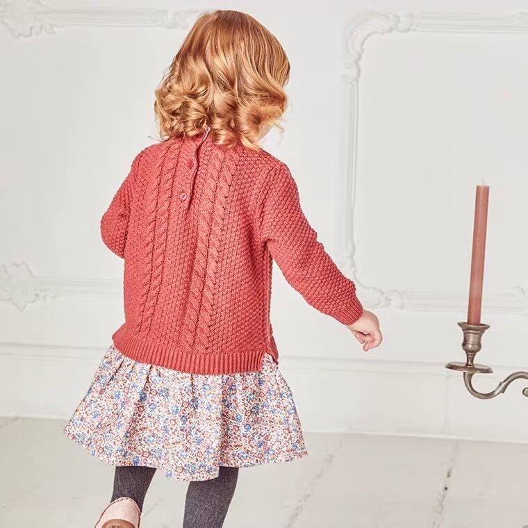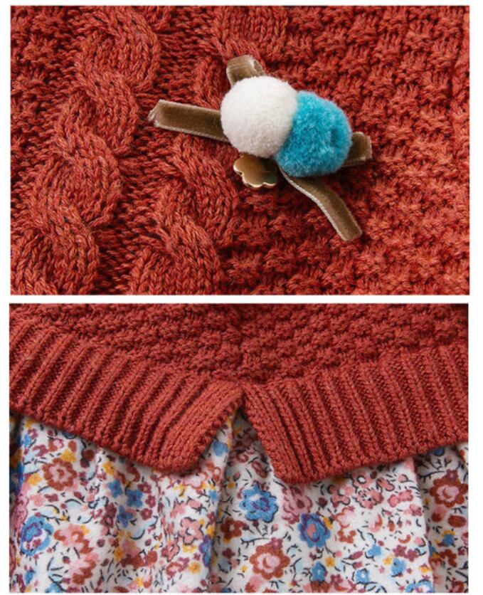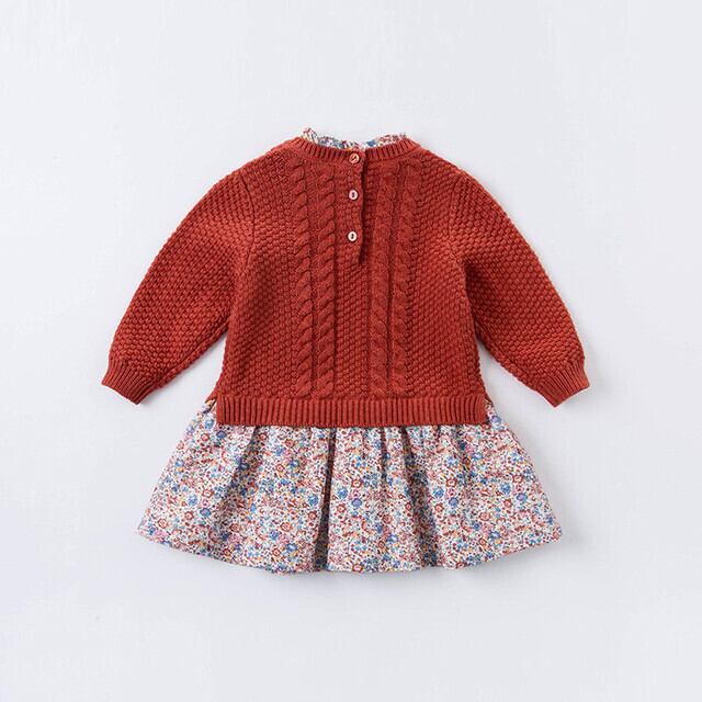 ケーブルニットドッキングフローラルプリントワンピース DB14920