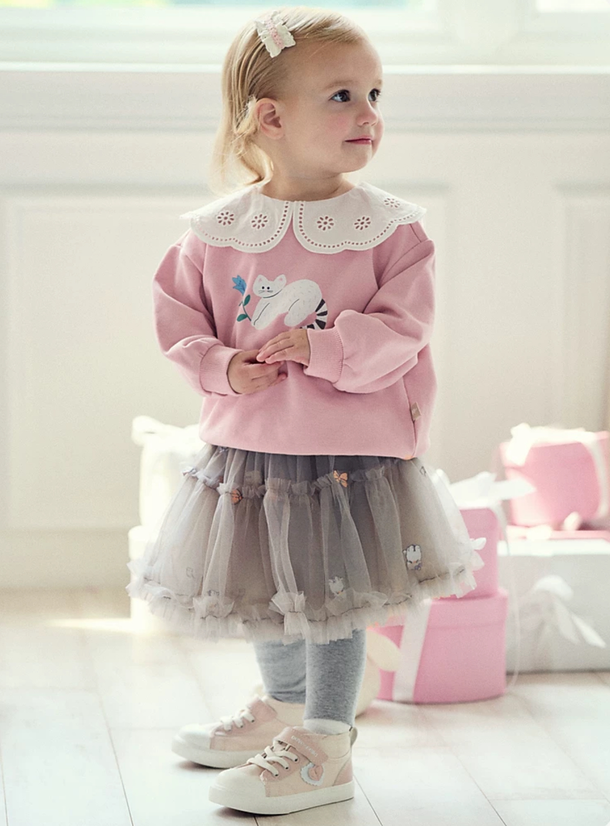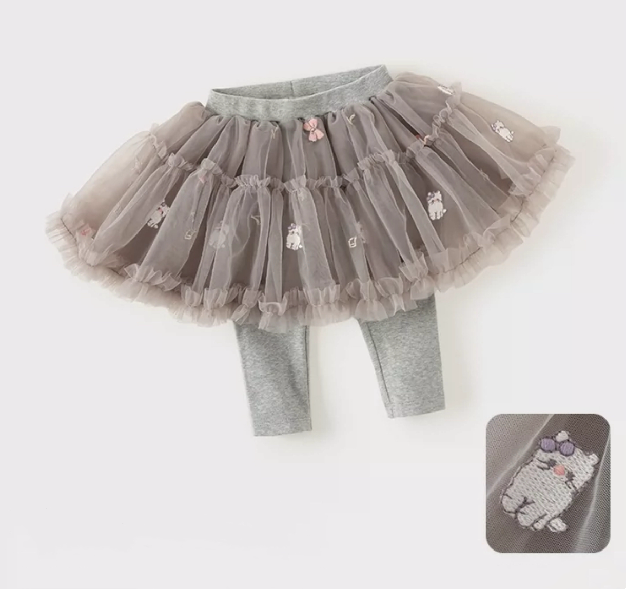 ねこちゃんやリボン刺繍がかわいらしいチュールスカートです。