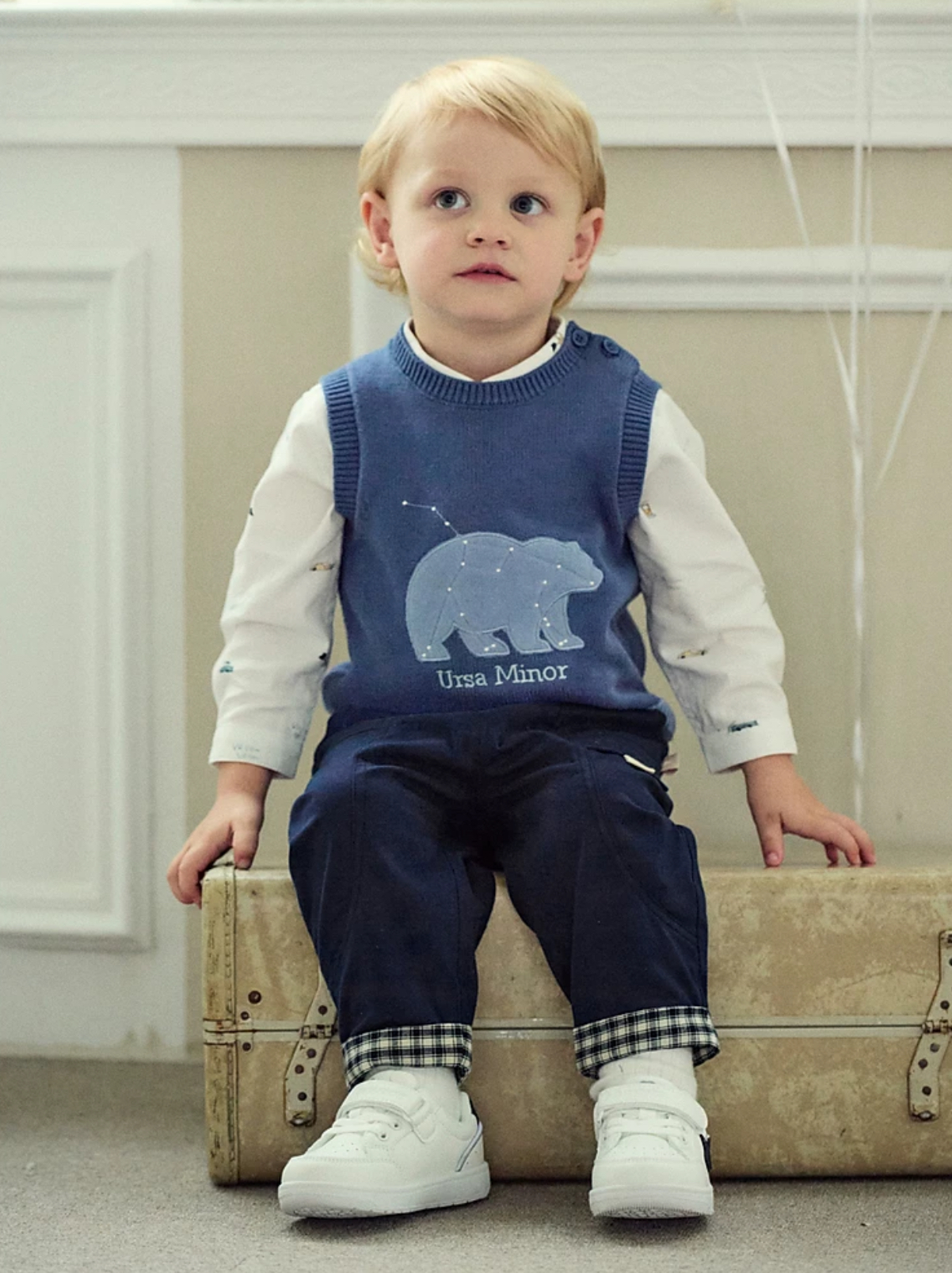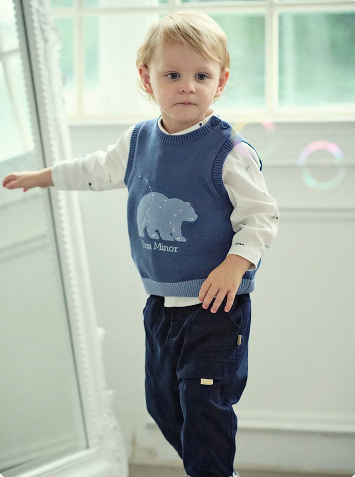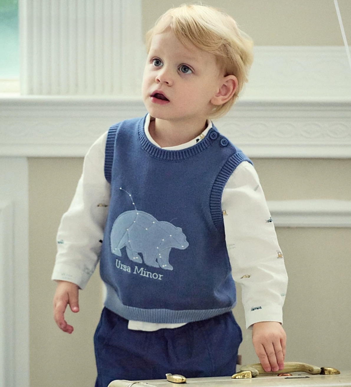 しろくまさんの星座デザインがおしゃれで目をひくベストです。