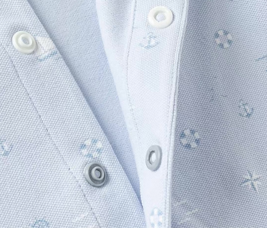 ポロシャツ風の襟付きデザインで、カジュアルながらきちんと感も演出します。
