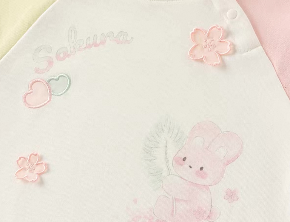 うさちゃんがお花見をしているデザインのワンピースになります。