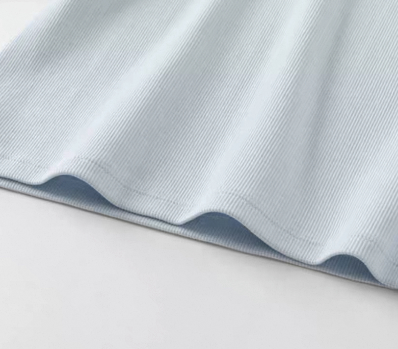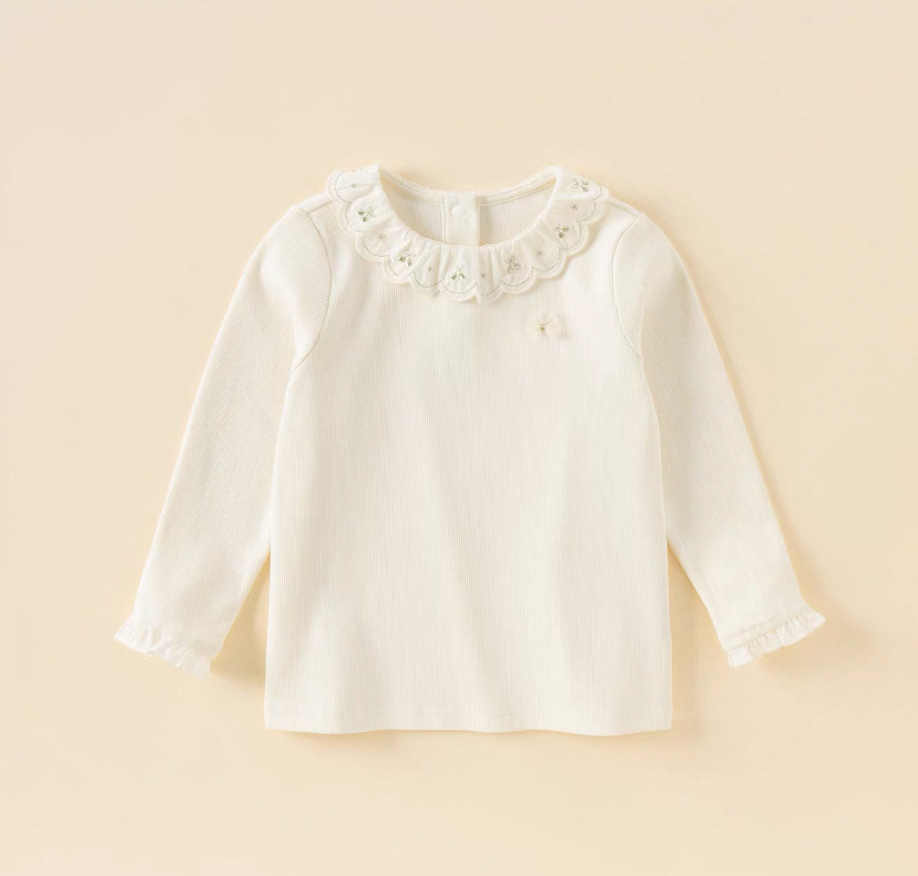 胸元の小さな刺繍がアクセントとなり、シンプルながらも上品さを引き立てています。