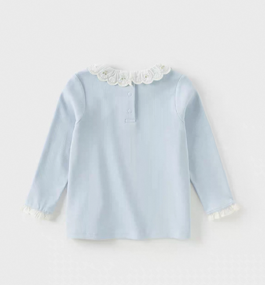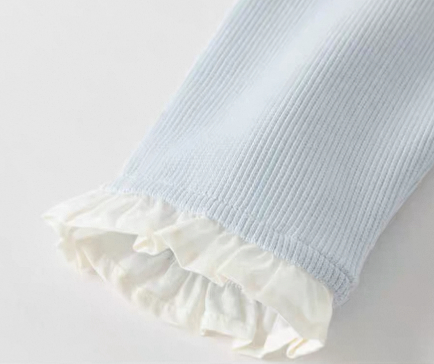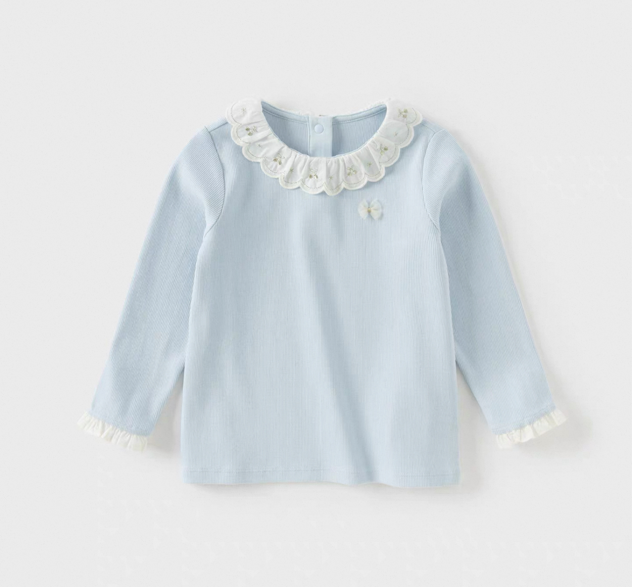 アイボリーとライトブルーの柔らかな2色から選べる長袖トップスです。