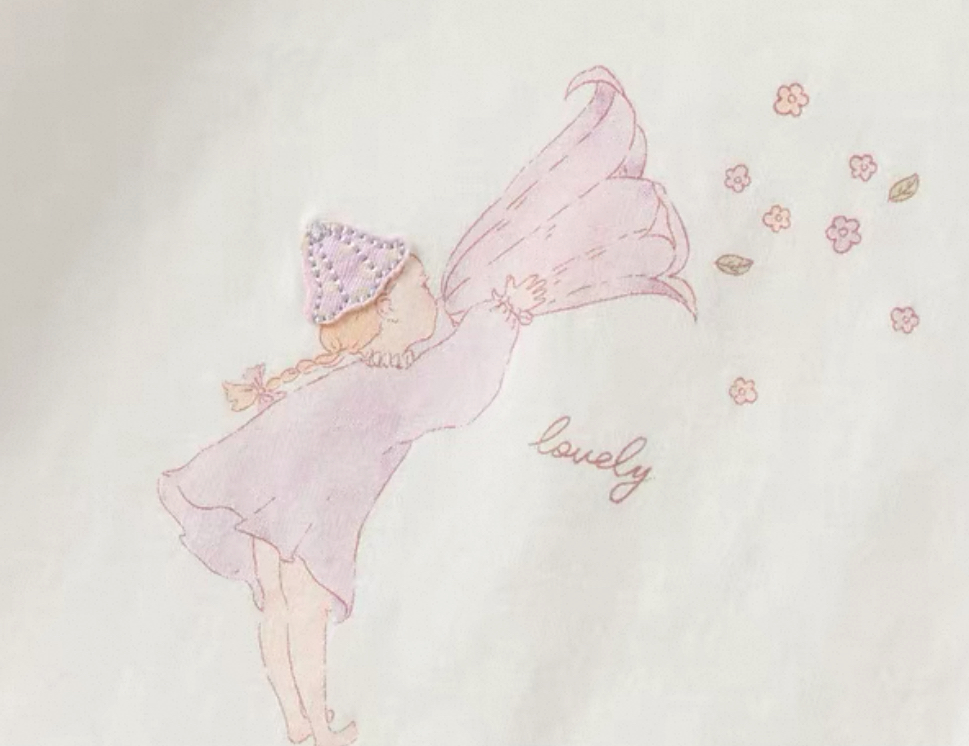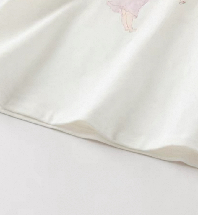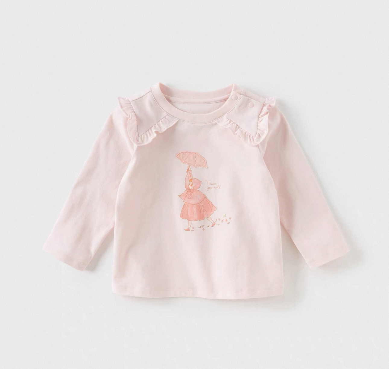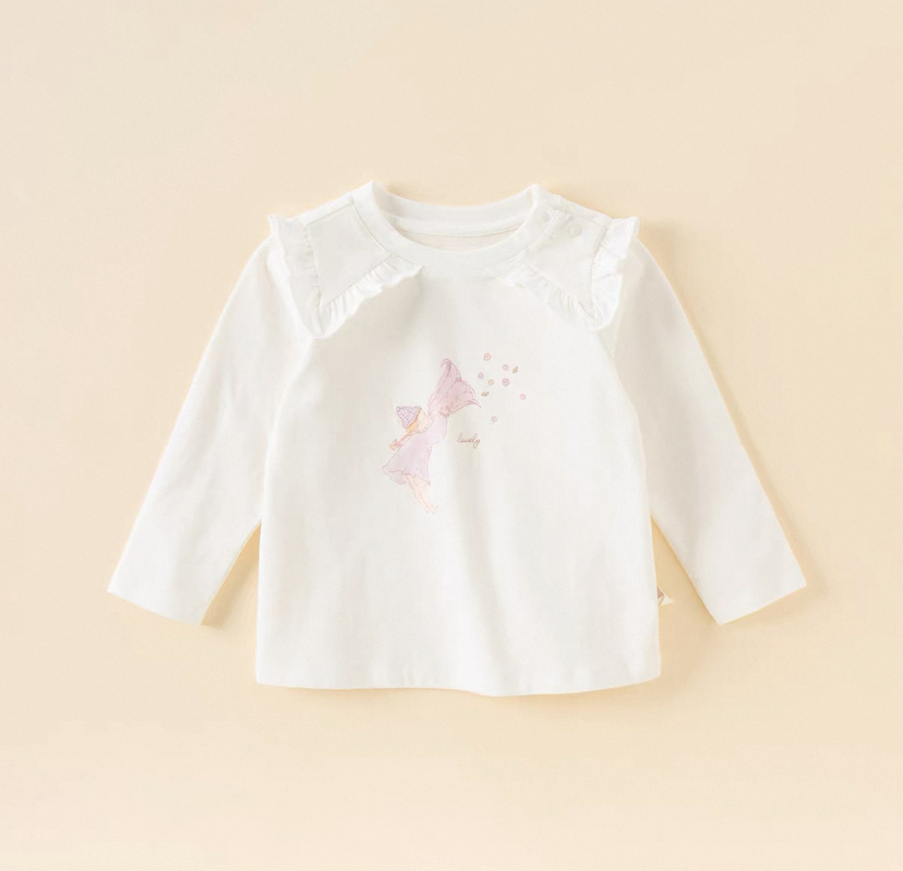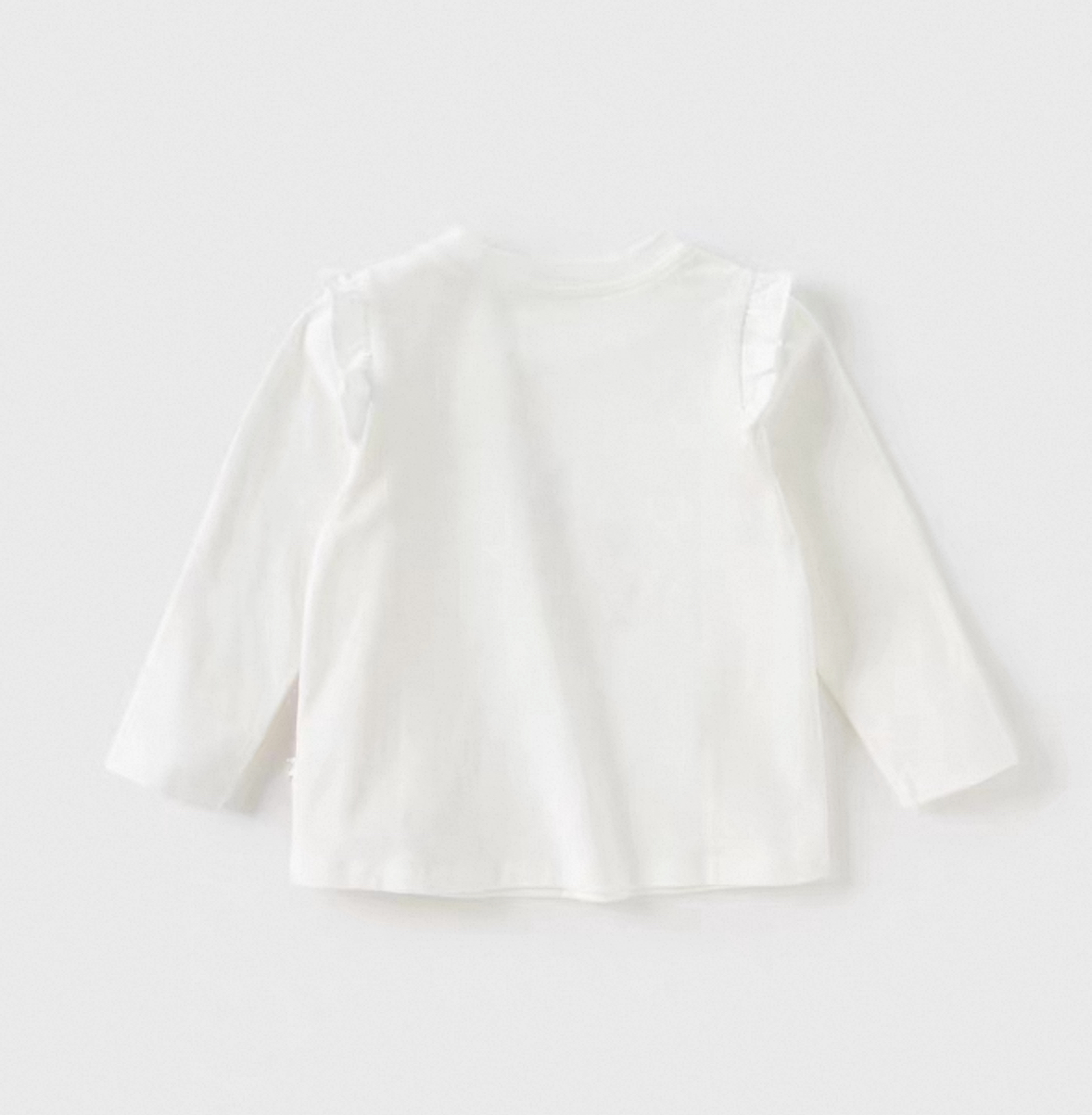 こちらは、優しいタッチのプリントが印象的なフリル襟付き長袖Tシャツですです。