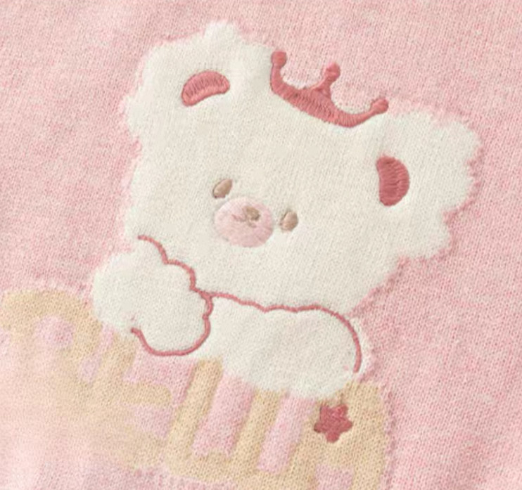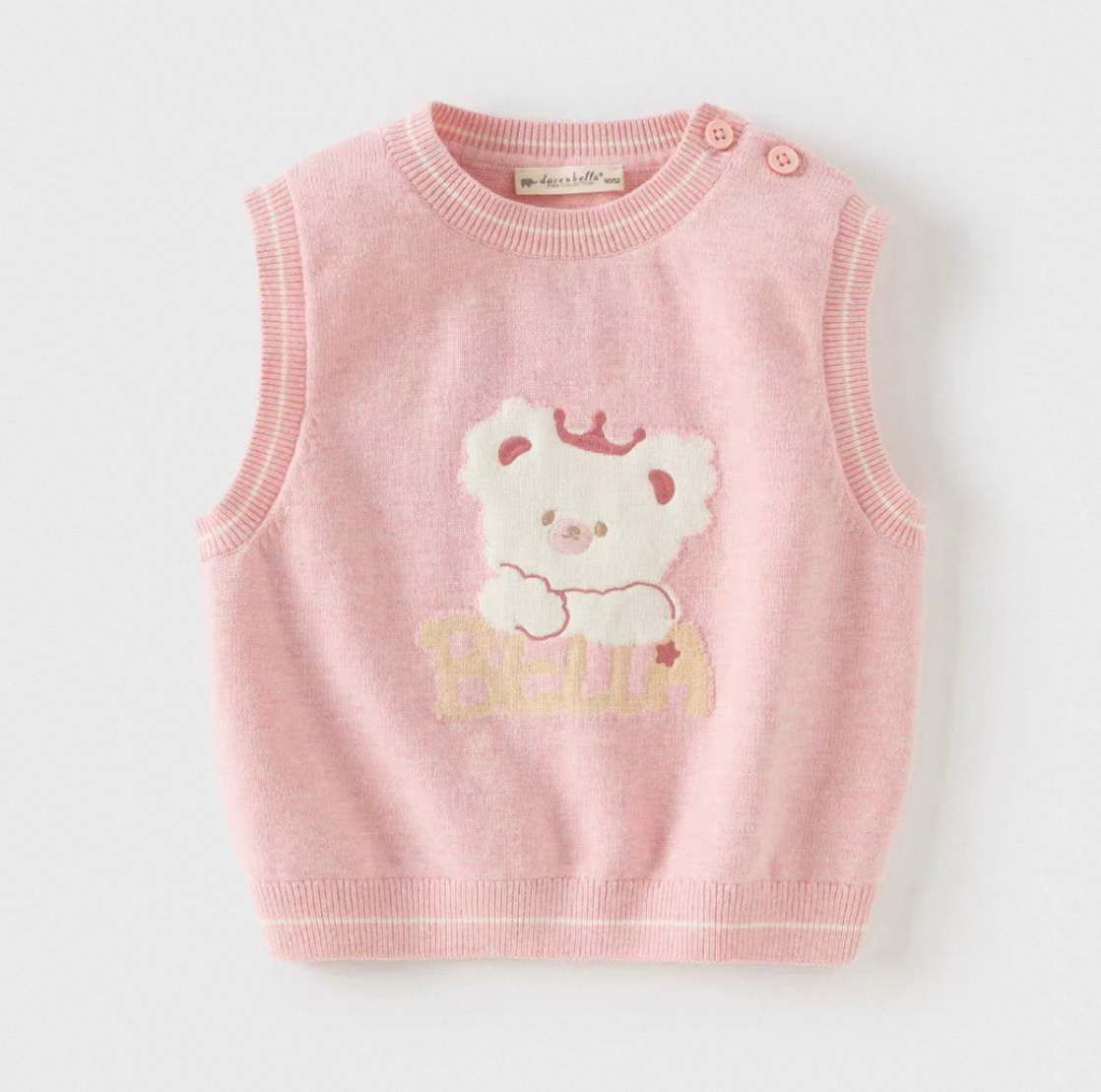 やわらかい色合いと可愛らしい動物モチーフがポイントの 3色展開ニットベスト です。