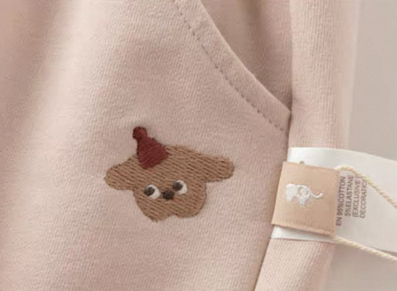 右ポケット下には、ベージュカラーにはくまさん刺繍、
