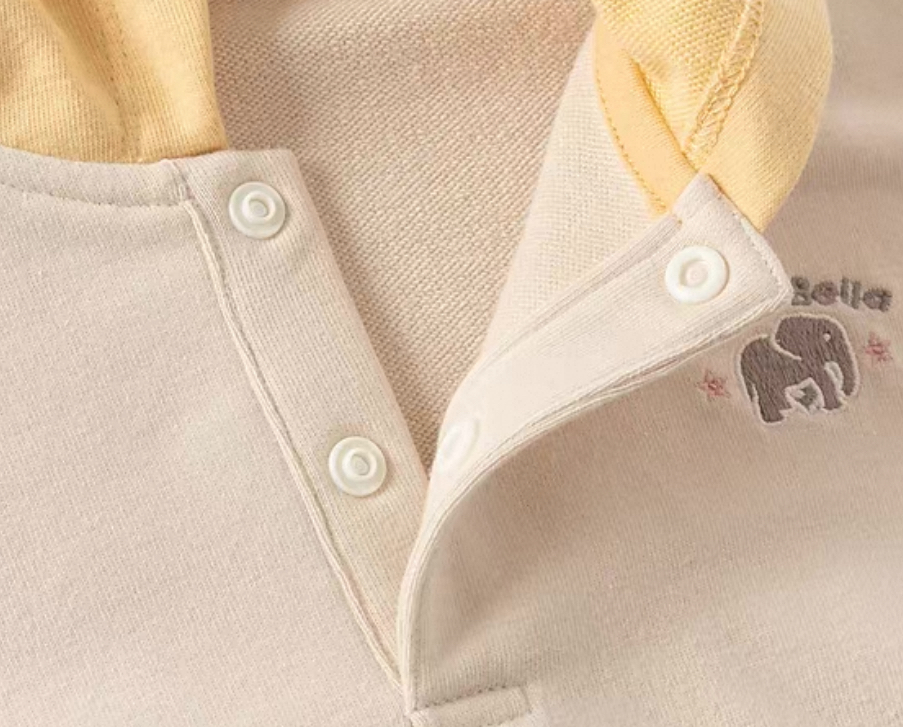 フロントには小さなゾウさん刺繍と“Enjoy & Relax”のロゴ入りで、ナチュラルな可愛さをプラスしています。