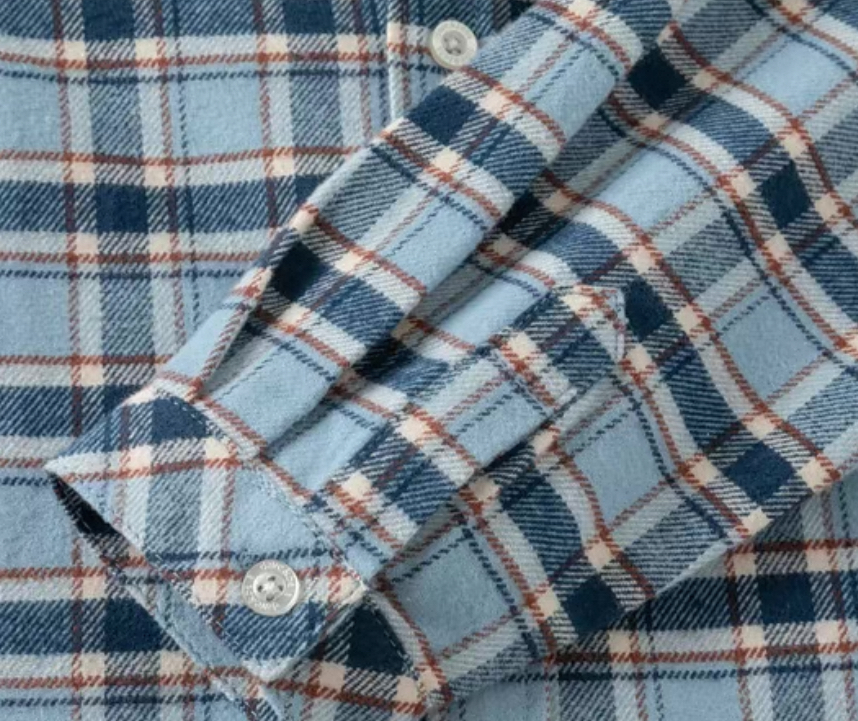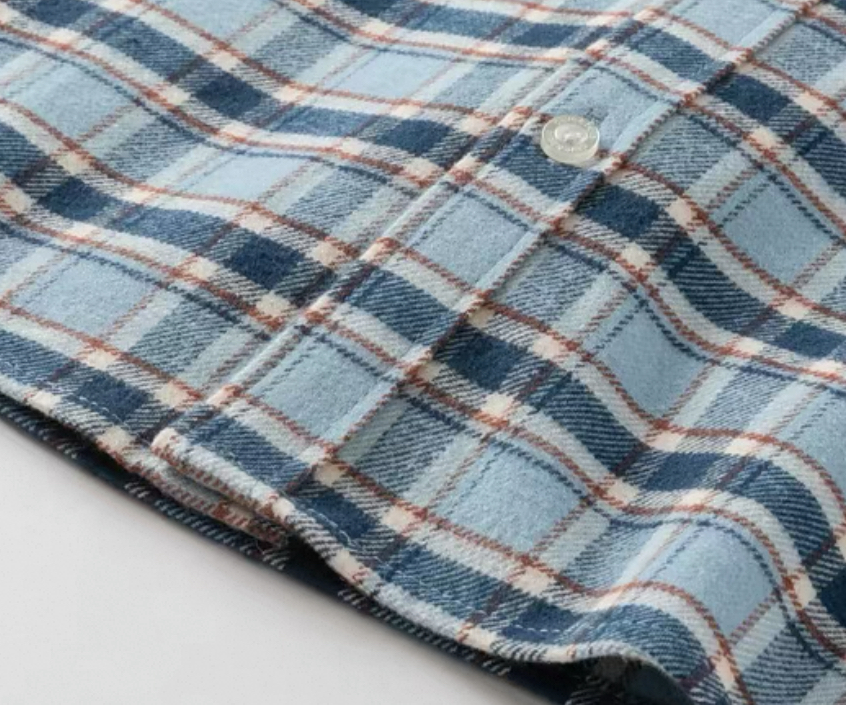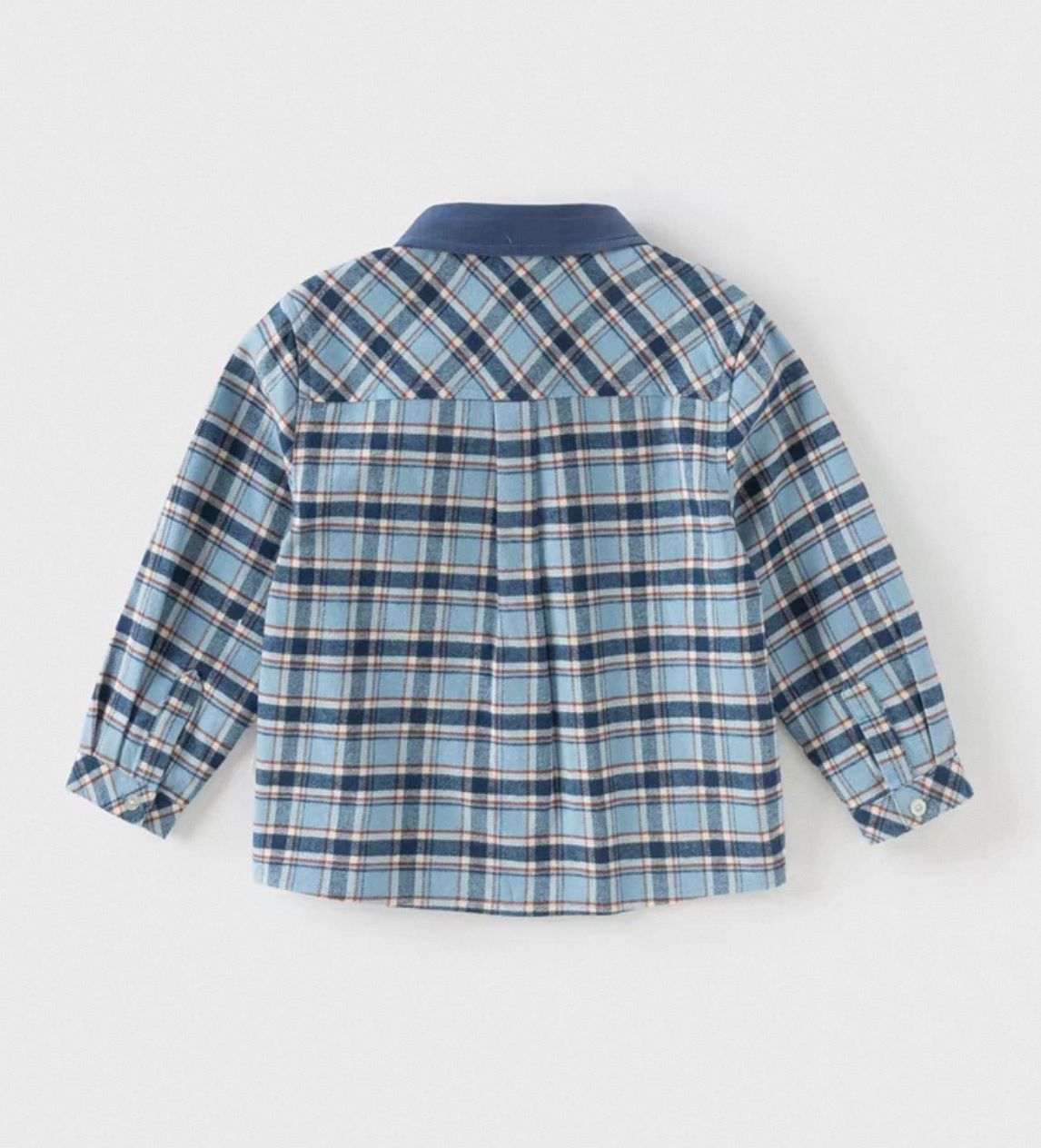 爽やかなブルー系のチェック柄が印象的な、カジュアルで可愛らしいキッズシャツです。