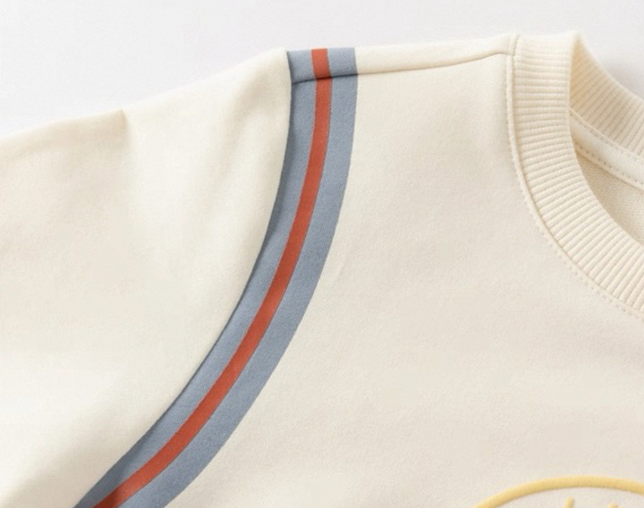 アイボリーのボディに、肩のライン切り替えと袖のイエローアクセントが映えるスポーティーデザインです。