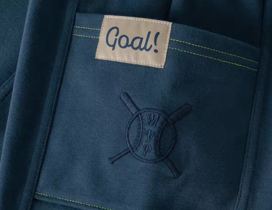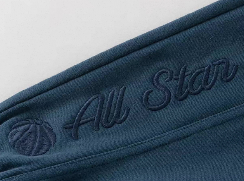 サイドポケットには「Goal!」のロゴ入りタグ、脚部分には立体感のある「All Star」の刺繍が施され、スポーティーな雰囲気に仕上がっています。