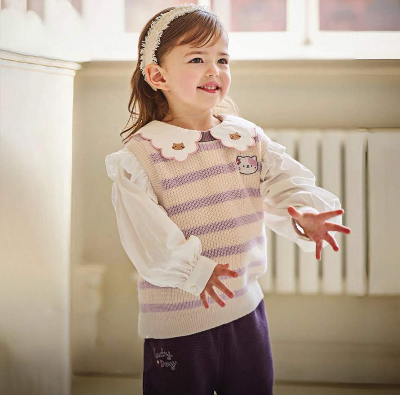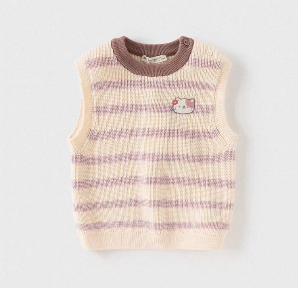 ねこちゃん刺繍ボーダーニットベスト DB3253264