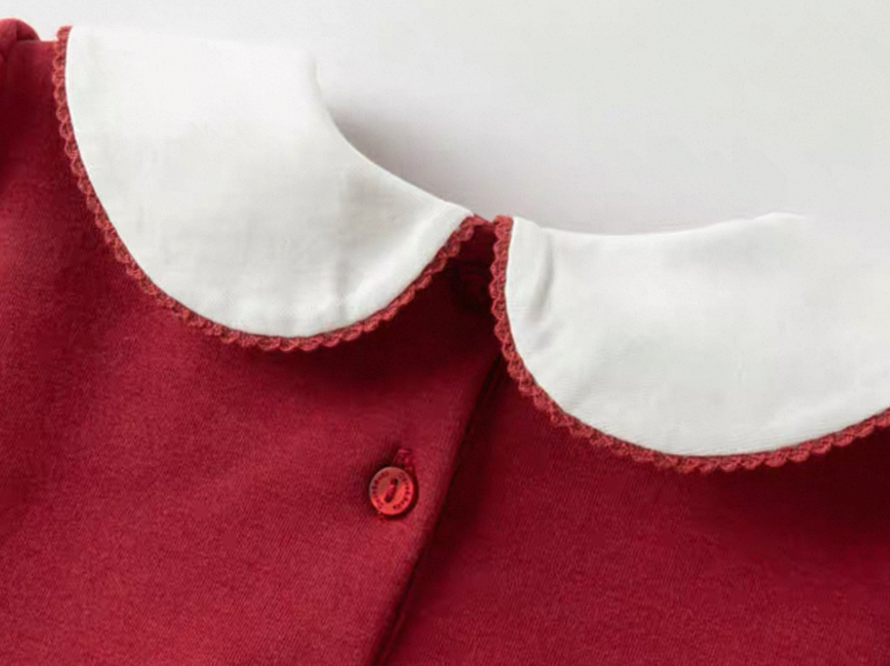 ふんわりとしたシルエットと、丸い襟が愛らしい印象のワンピースです。