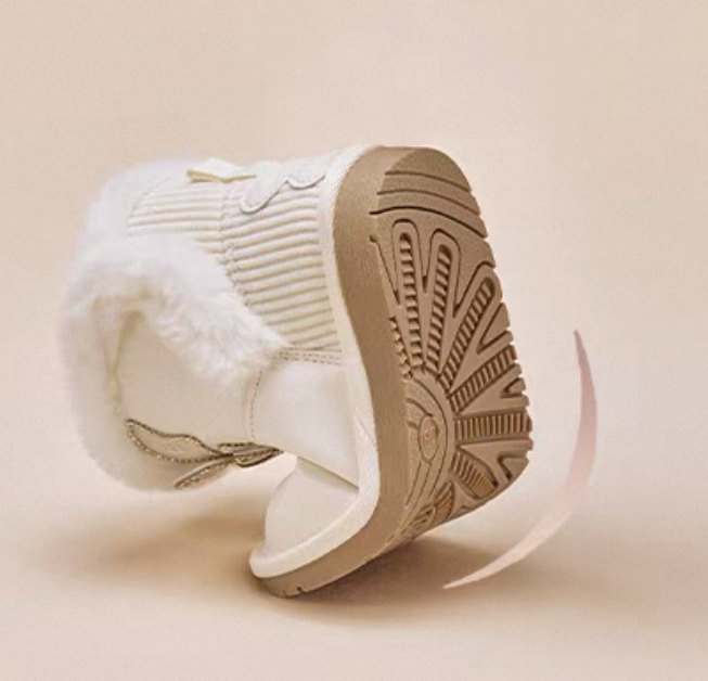 足首まわりにはふわふわのフェイクファーが施され、冬のお出かけでも暖かく快適に過ごせます。