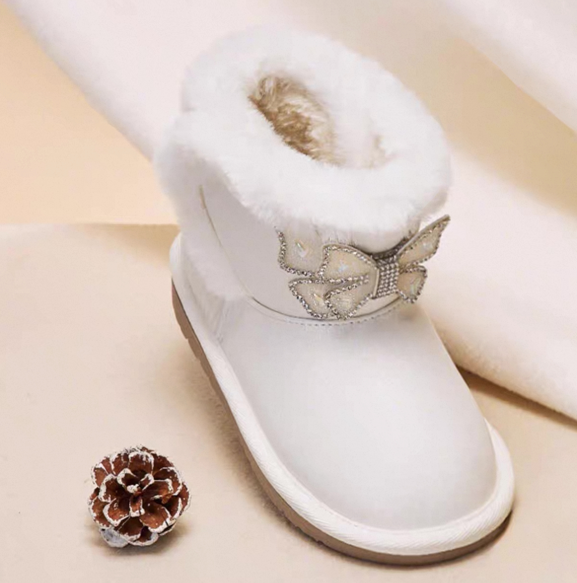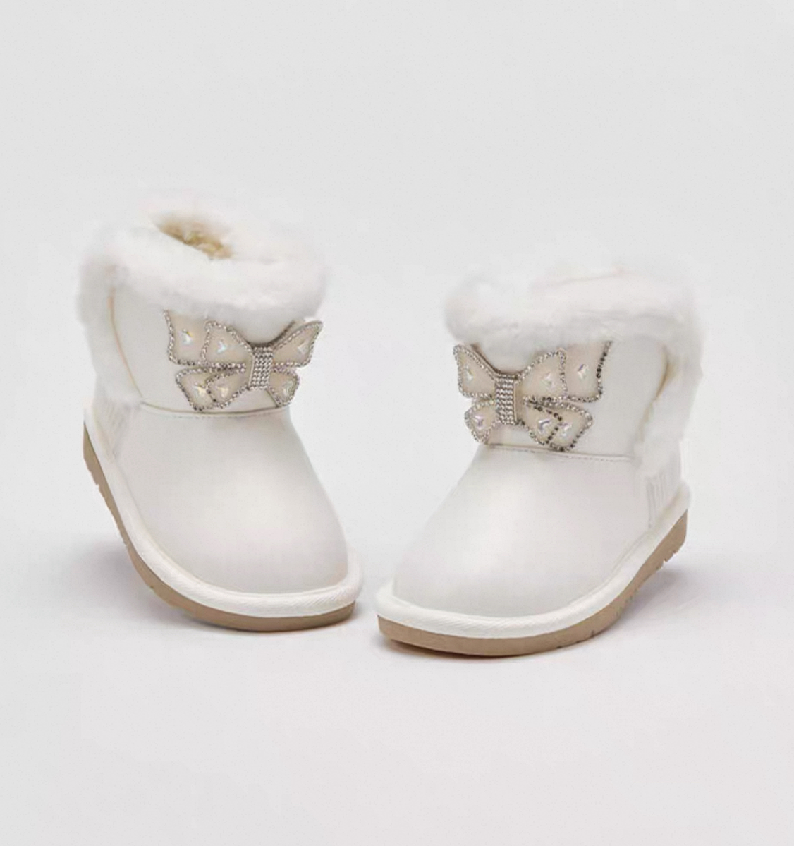 ホワイトキラキラリボン付きショートブーツ DB4254752