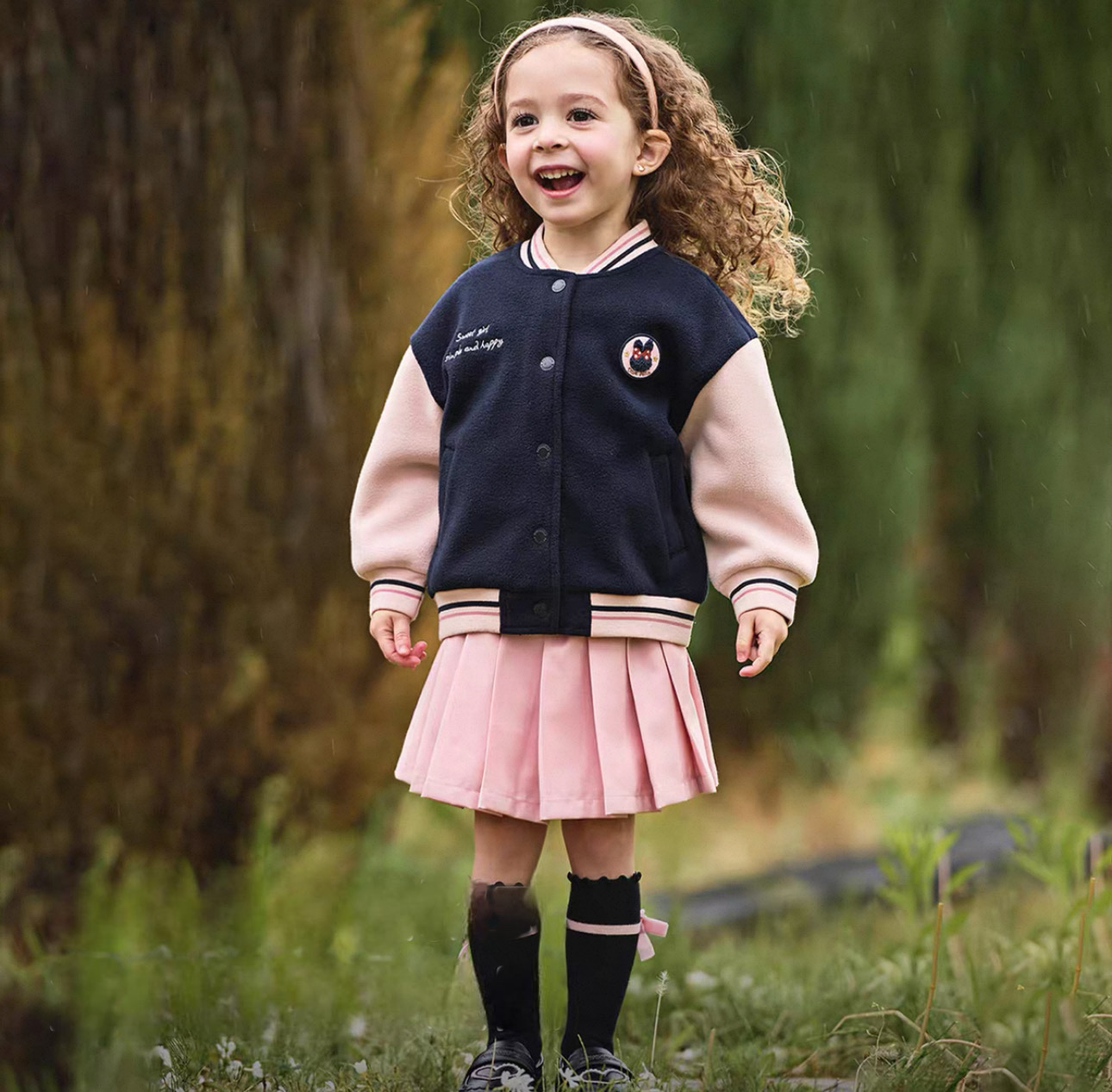 ネイビー×ピンクの配色が目を惹く、ガーリースポーティなブルゾンです。