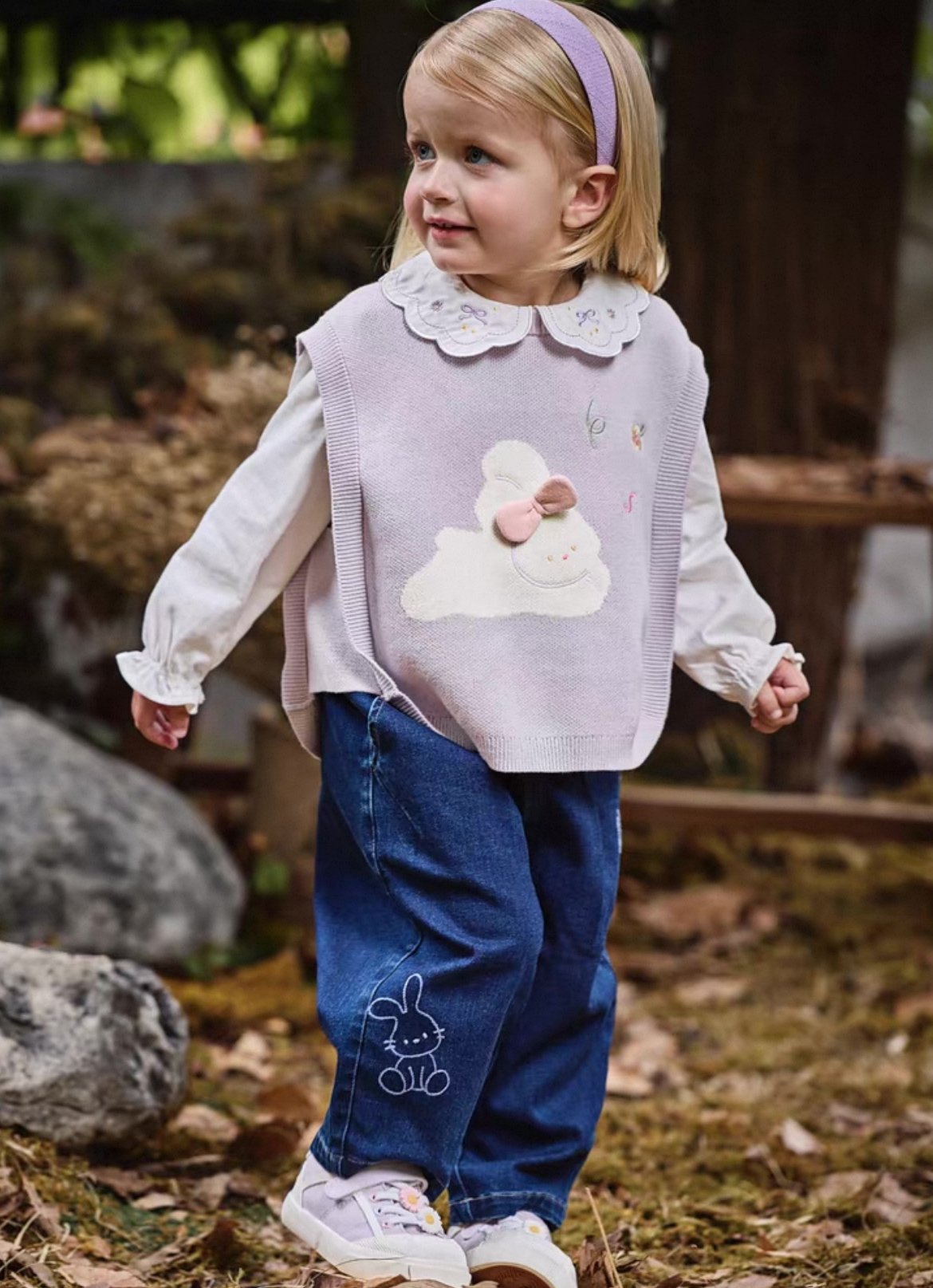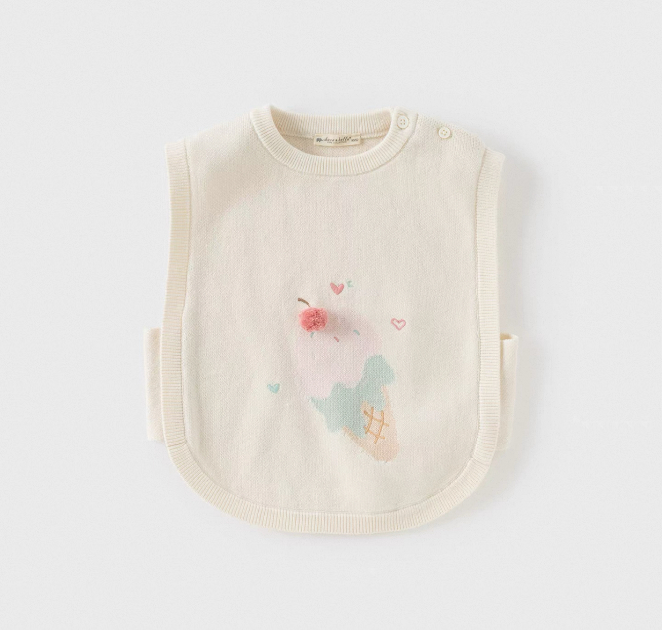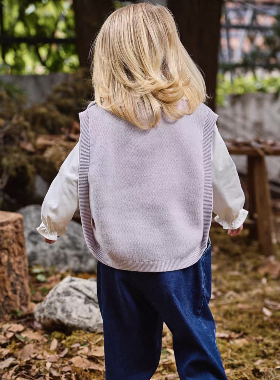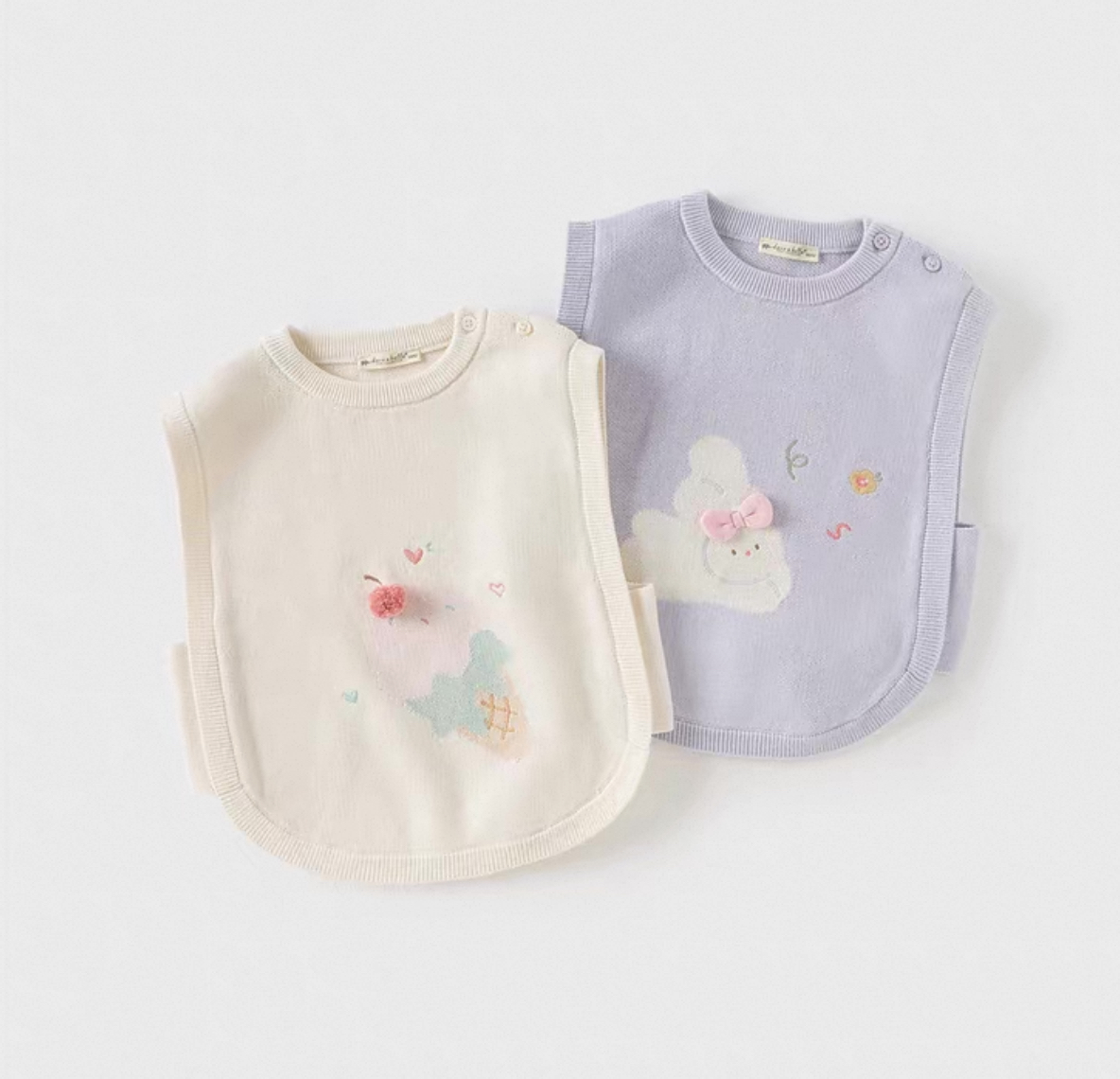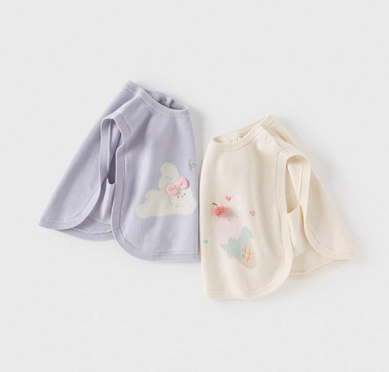 柔らかなニット素材で仕立てた、キュートなモチーフ入りベビーベストです。