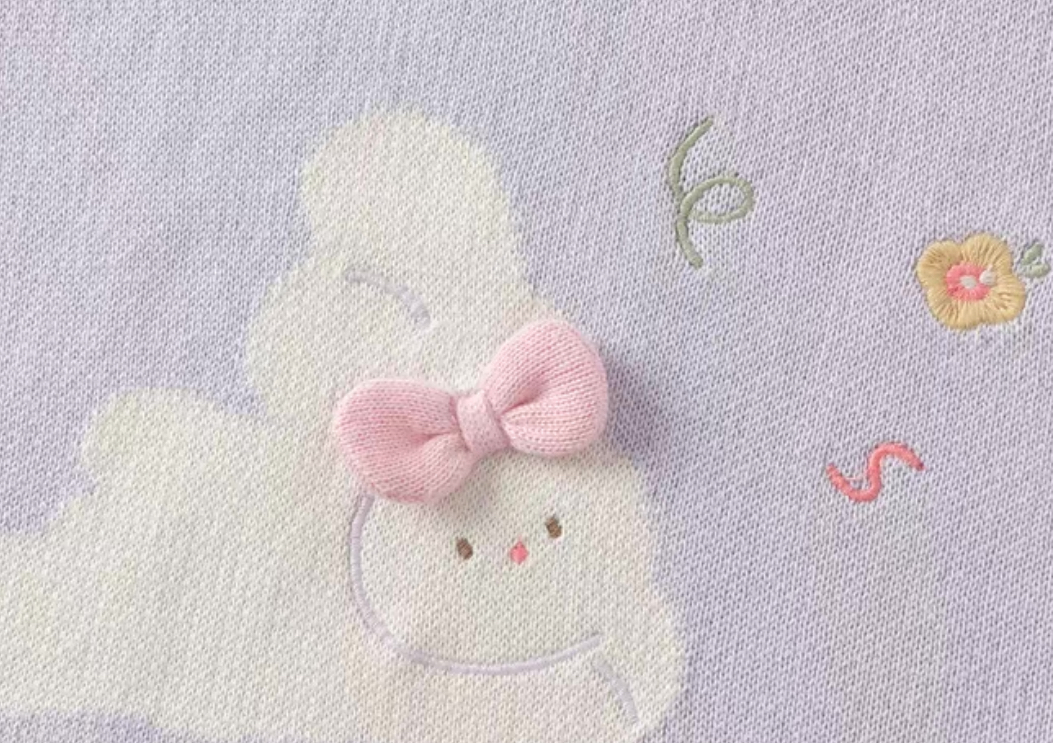 ラベンダーにはリボン付きのくまさんモチーフがデザインされており、