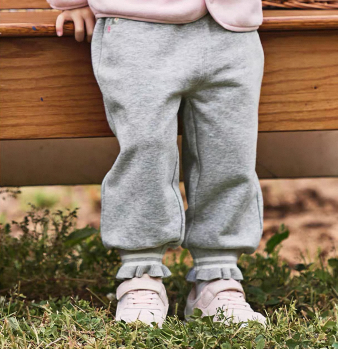 動きやすさと可愛らしさを兼ね備えた、柔らかスウェット素材のパンツです。