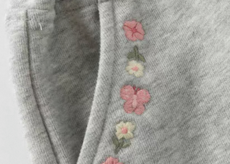 両サイドのポケットには繊細な小花刺繍が施され、