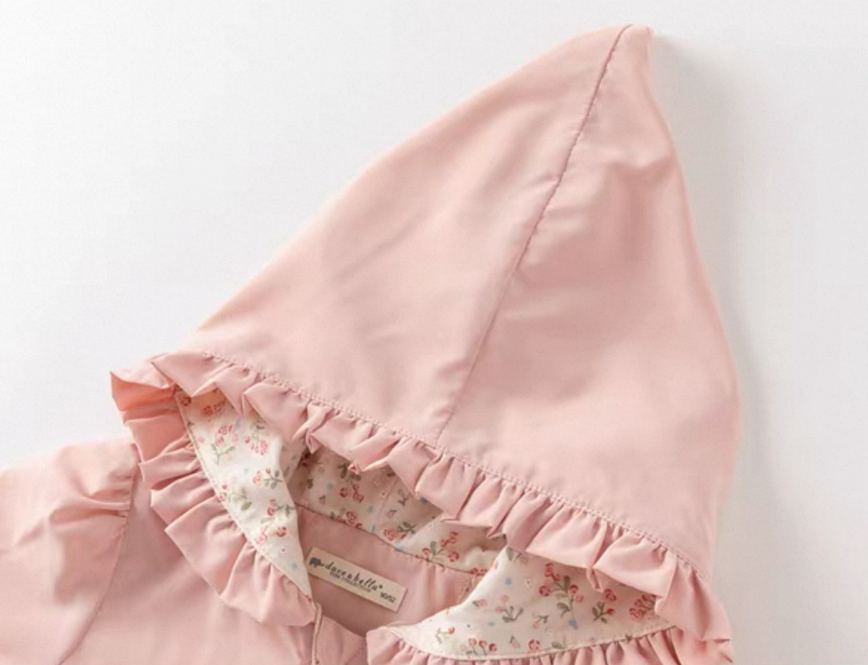 胸元のうさぎアップリケと、フードやウエスト部分のフリルが