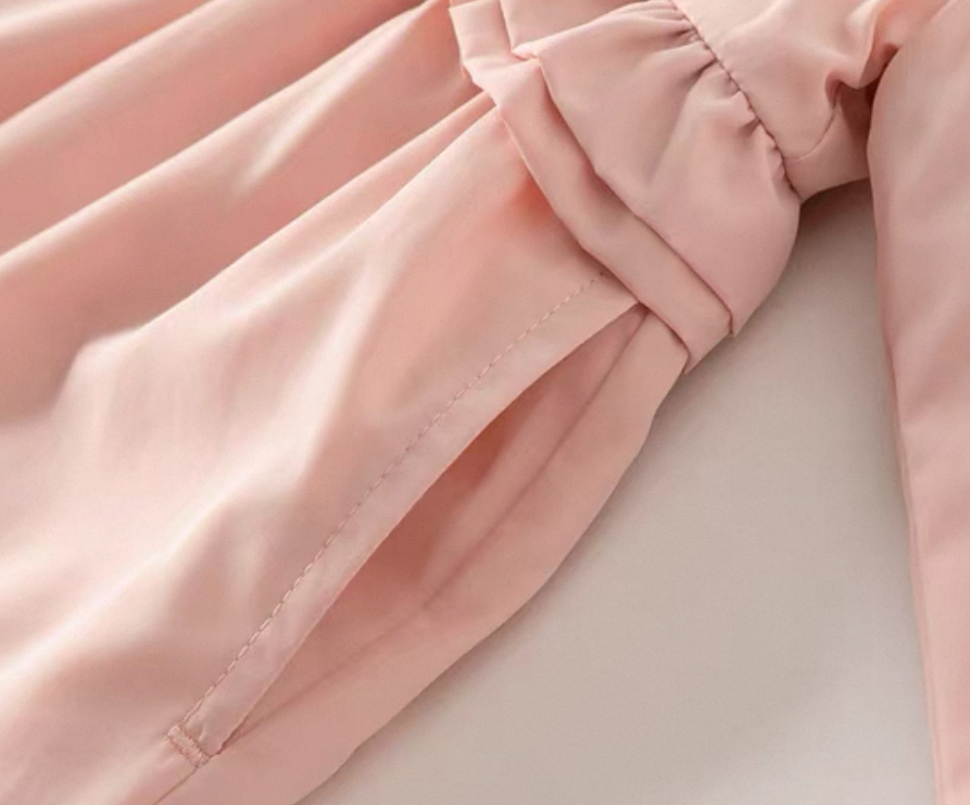 ガーリーで優しい印象のピンクカラーがかわいいアウターです。