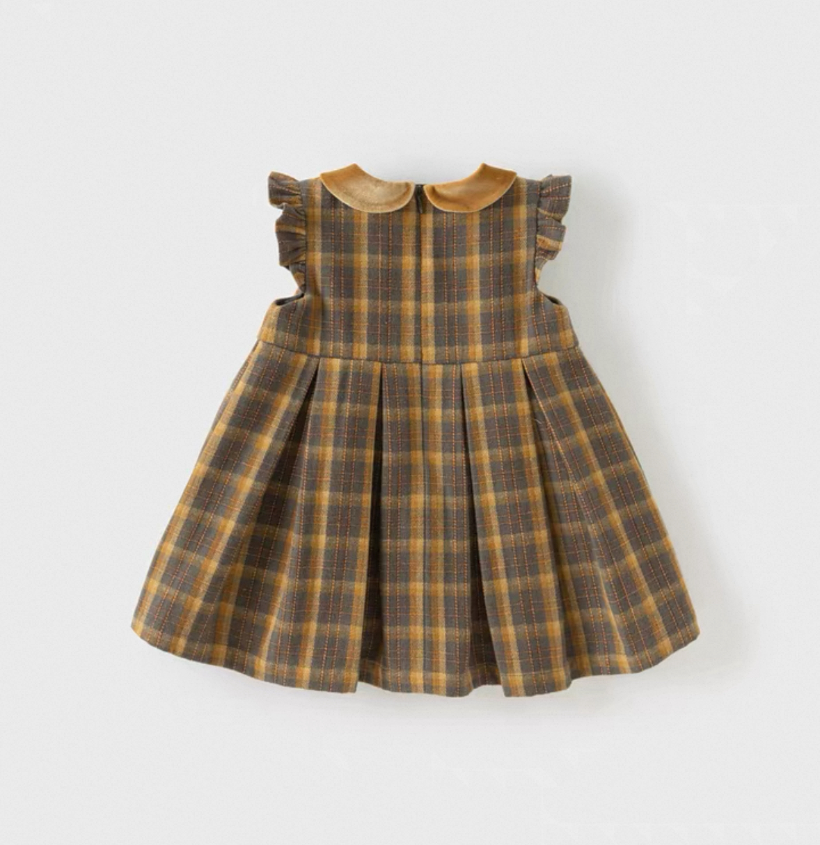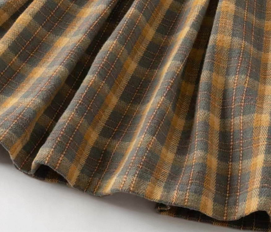 落ち着いたブラウン×イエロー系のチェック柄が季節感たっぷりのワンピースです。
