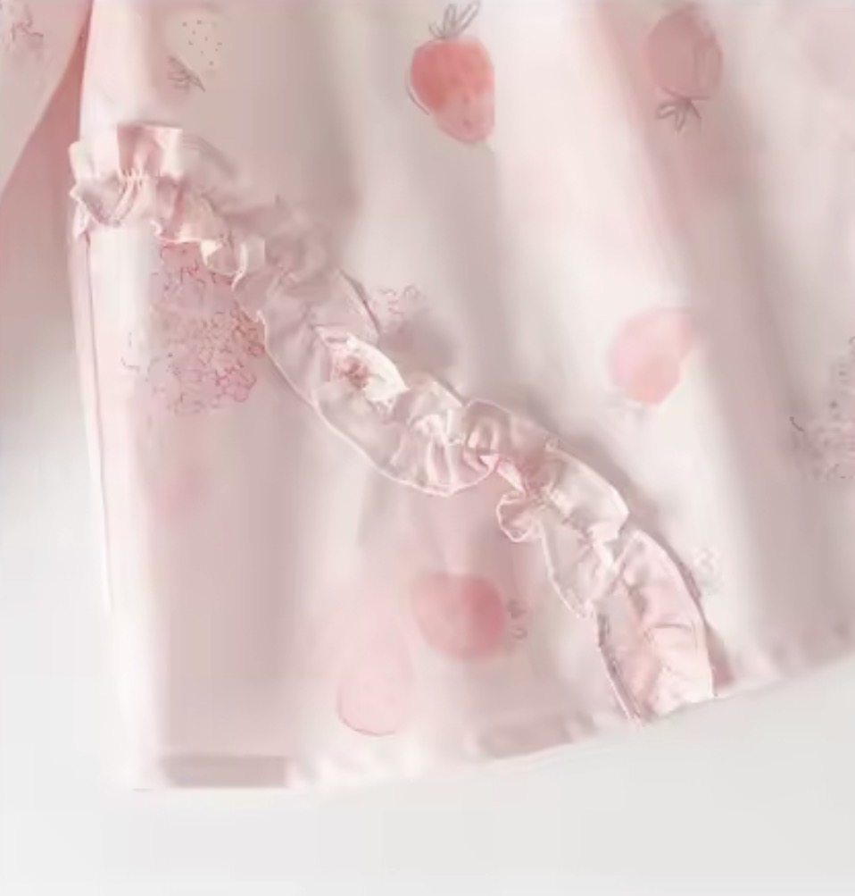 やさしいストロベリー柄をのせた