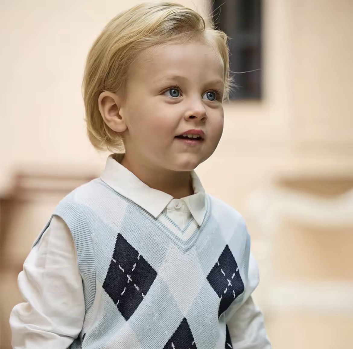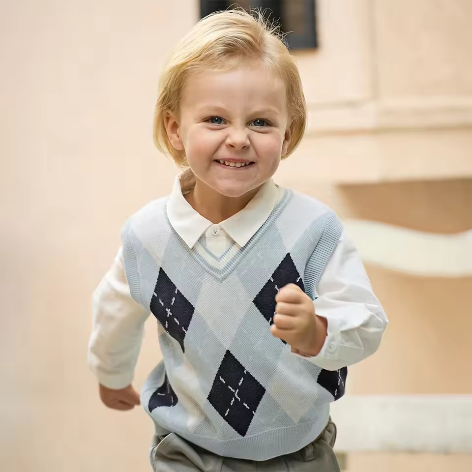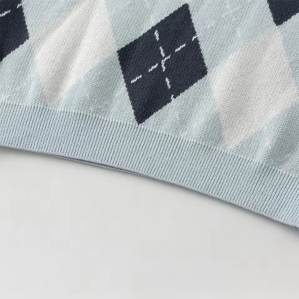 上品なアーガイル柄をあしらったニットベスト。