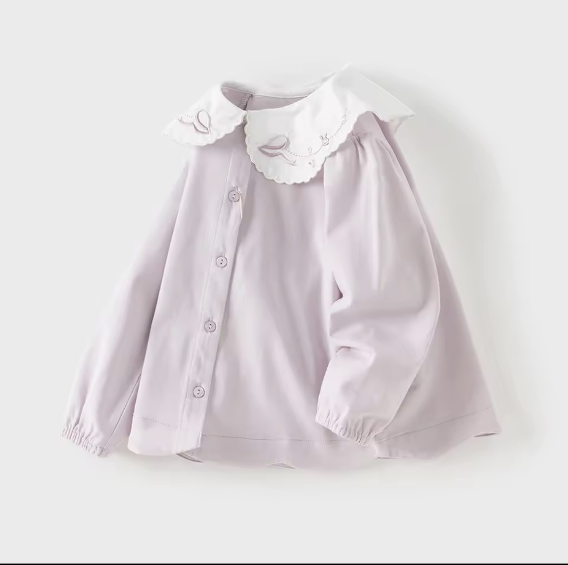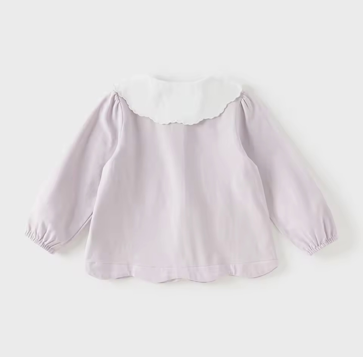 スカラップ仕上げの丸襟には、