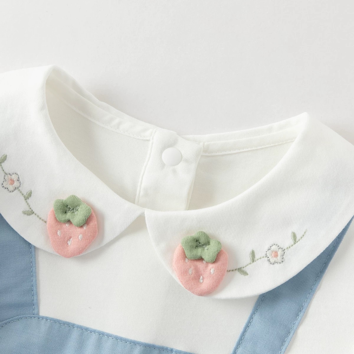 可愛らしいいちごモチーフの襟が目を惹く