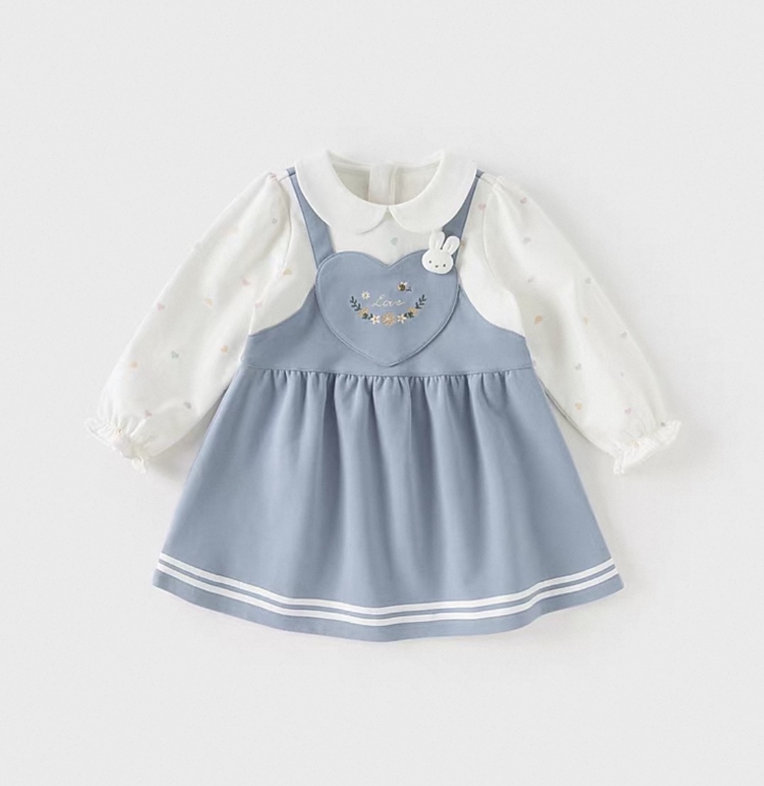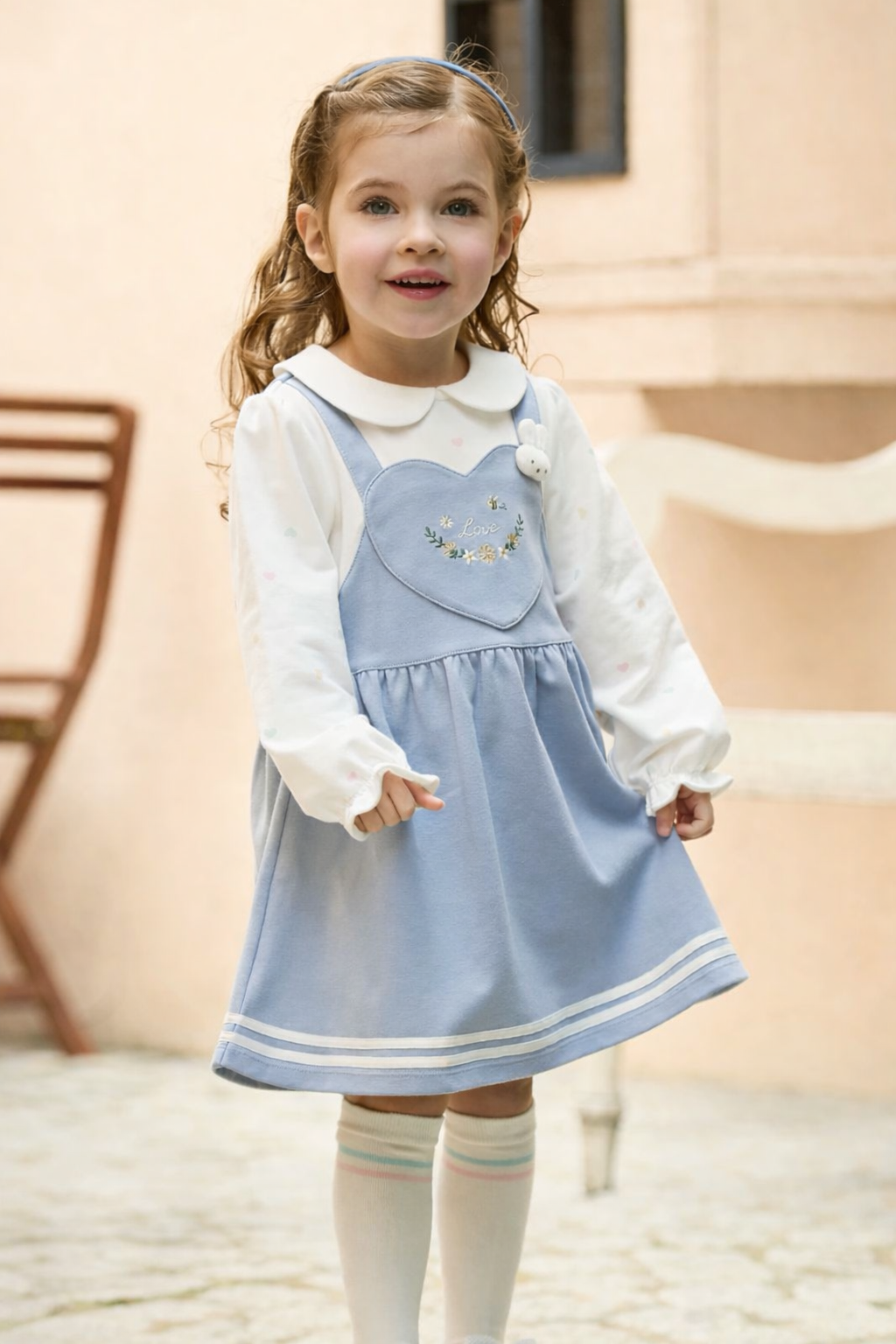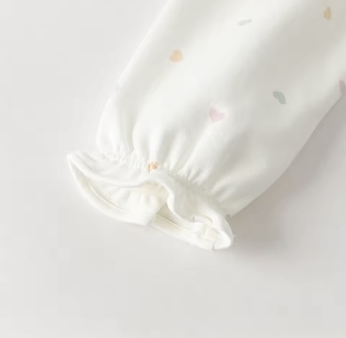 ブラウス部分にはカラフルなハートプリントをあしらい