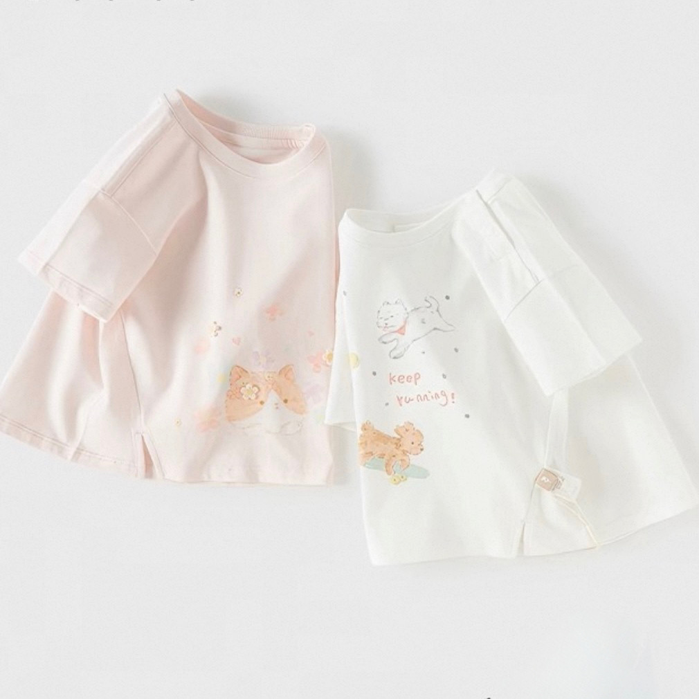 パフスリーブねこちゃんフラワーデザインTシャツ DB2251882