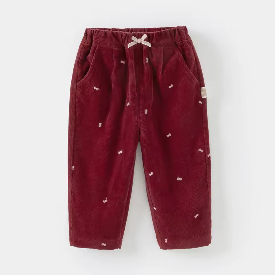 dave&bella ポンポンリボン付きドット柄コーデュロイパンツ DBS18268