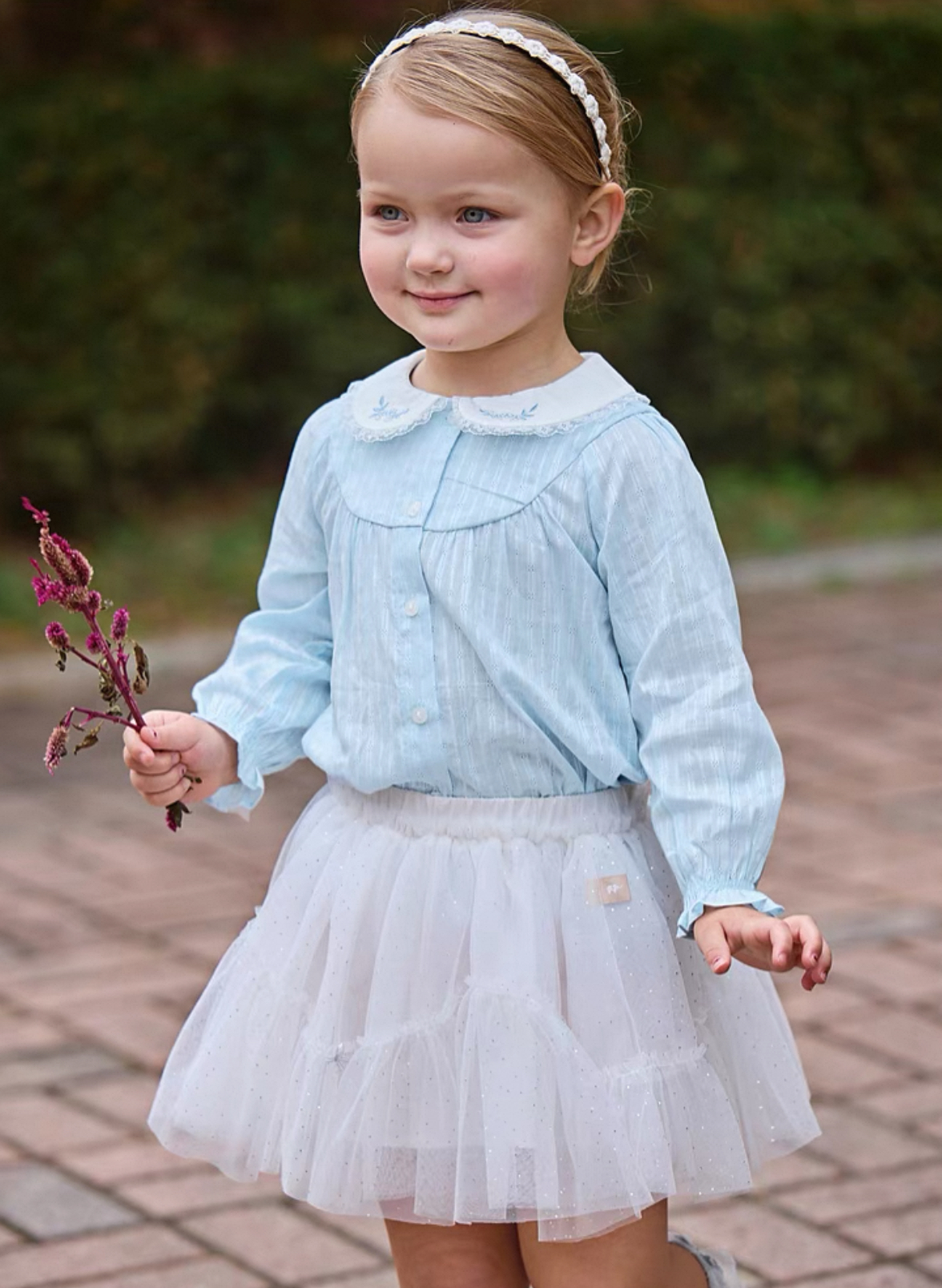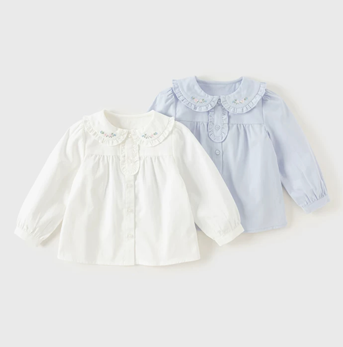 フラワー刺繍ライトブルーカラーブラウス DB1250890
