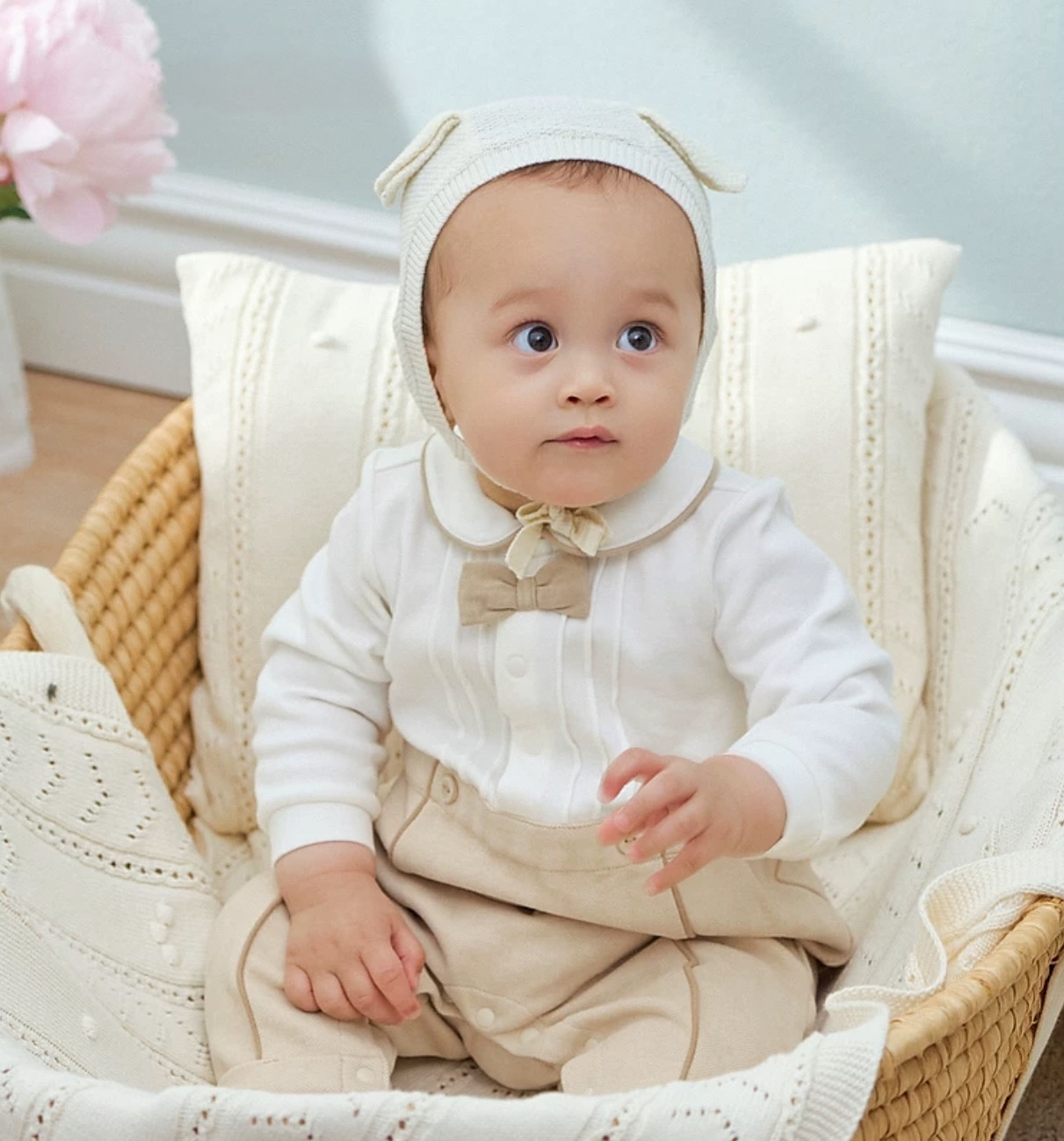 ベージュカラーボウタイ付きフォーマルロンパース DB3242368
