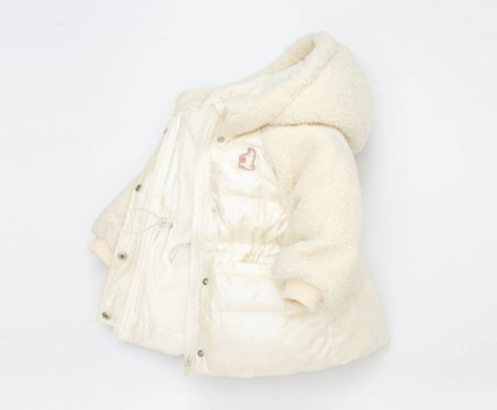 可愛いフード付きダウンコートです。