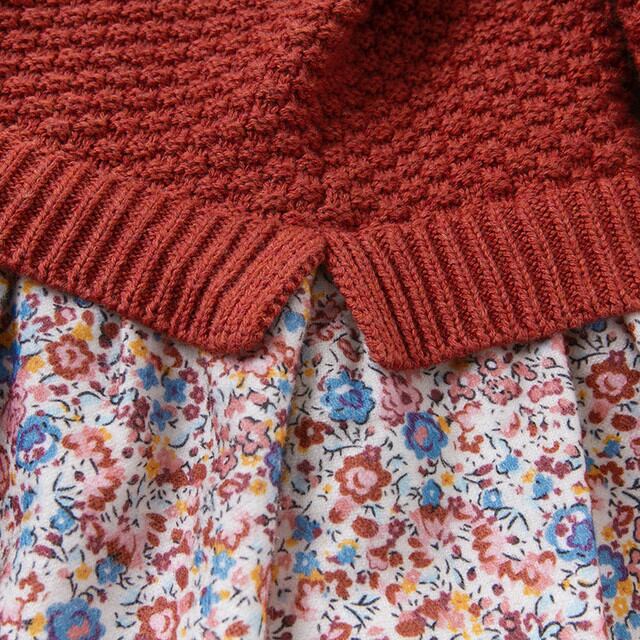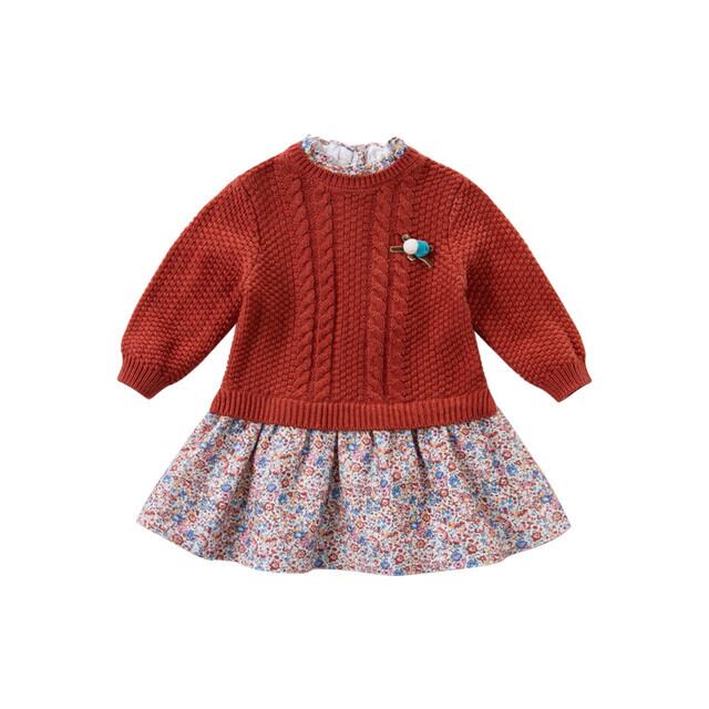 ケーブルニットドッキングフローラルプリントワンピース DB14920