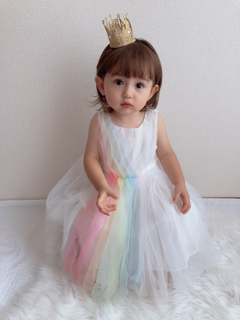 dave&bella レインボーカラーチュールホワイトドレス DB2220960