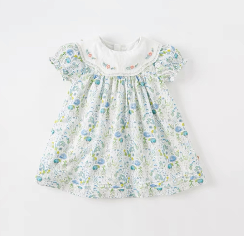 dave&bella フラワー刺繍レース襟デザインボタニカルプリントワンピース DB2235218