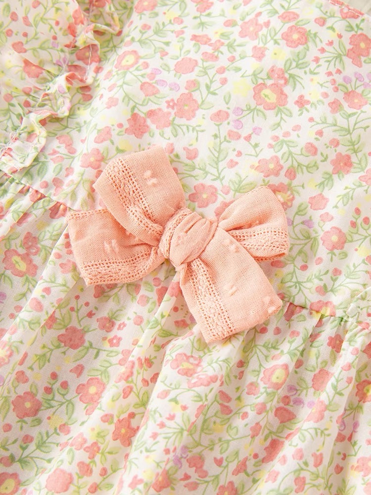 dave&bella オレンジリトルフラワープリントトップス&フリルパンツ DB2235818