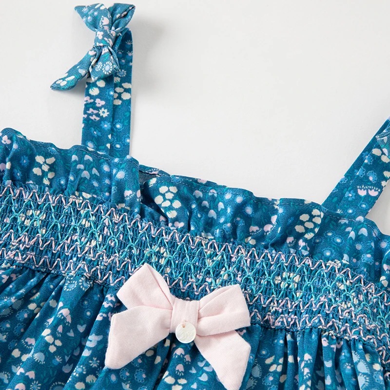 dave&bella ブルーフローラルプリントトップス&パンツ DB2234645