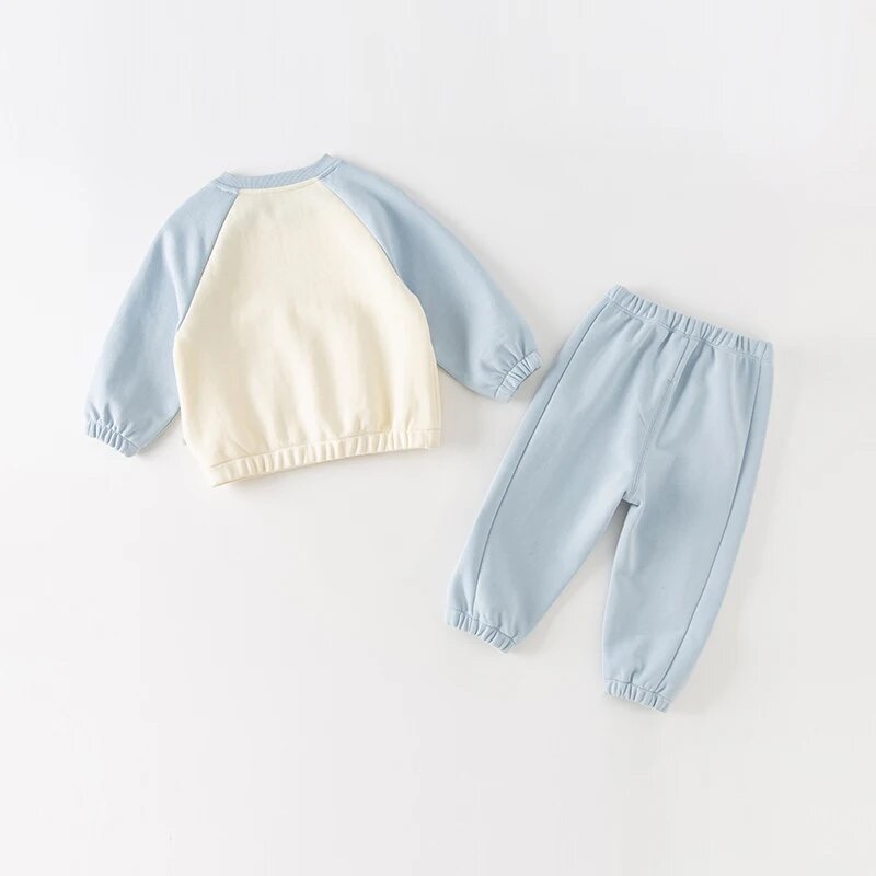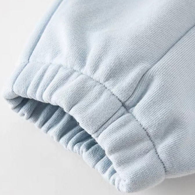 トップスのぞうさんとボトムスのロゴはぷっくりとふくらみのある
