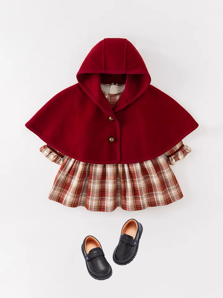 dave&bella レッドカラービンテージデザインポンチョ DB3236956