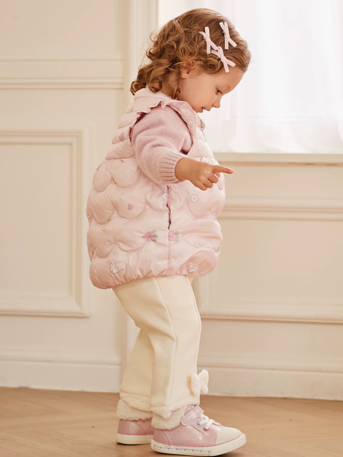 dave&bella 2色展開フラワーモチーフ付きダウンベスト DB4237036