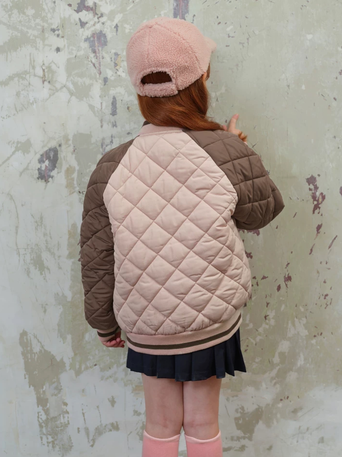 dave&bella kids ピンク×ブラウンキルティングスタジャン DK4238320