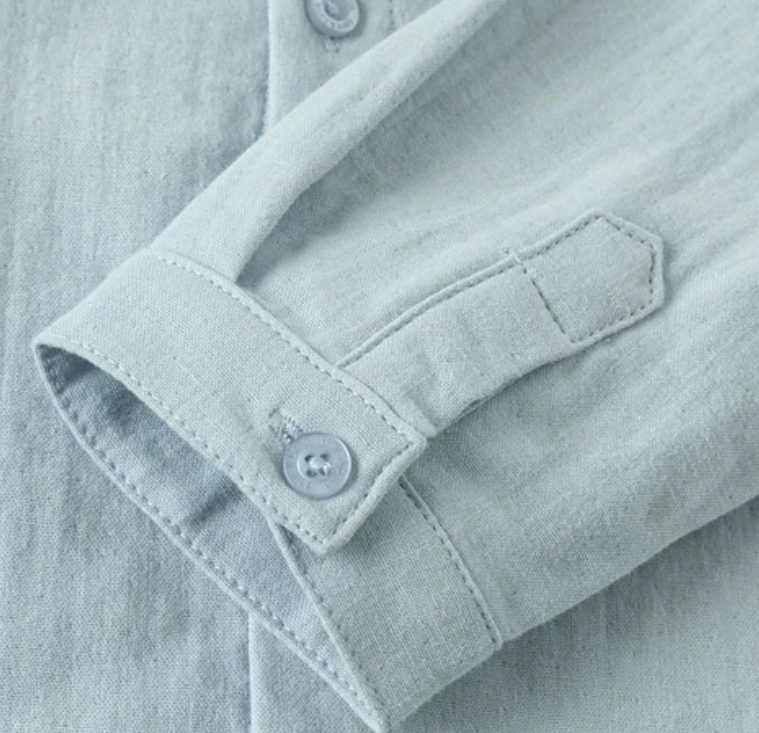 ライトブルーカラーが爽やでおしゃれなシャツです。