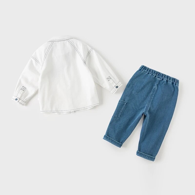 ステッチデザインがかわいいシャツとデニムのセットアップです。