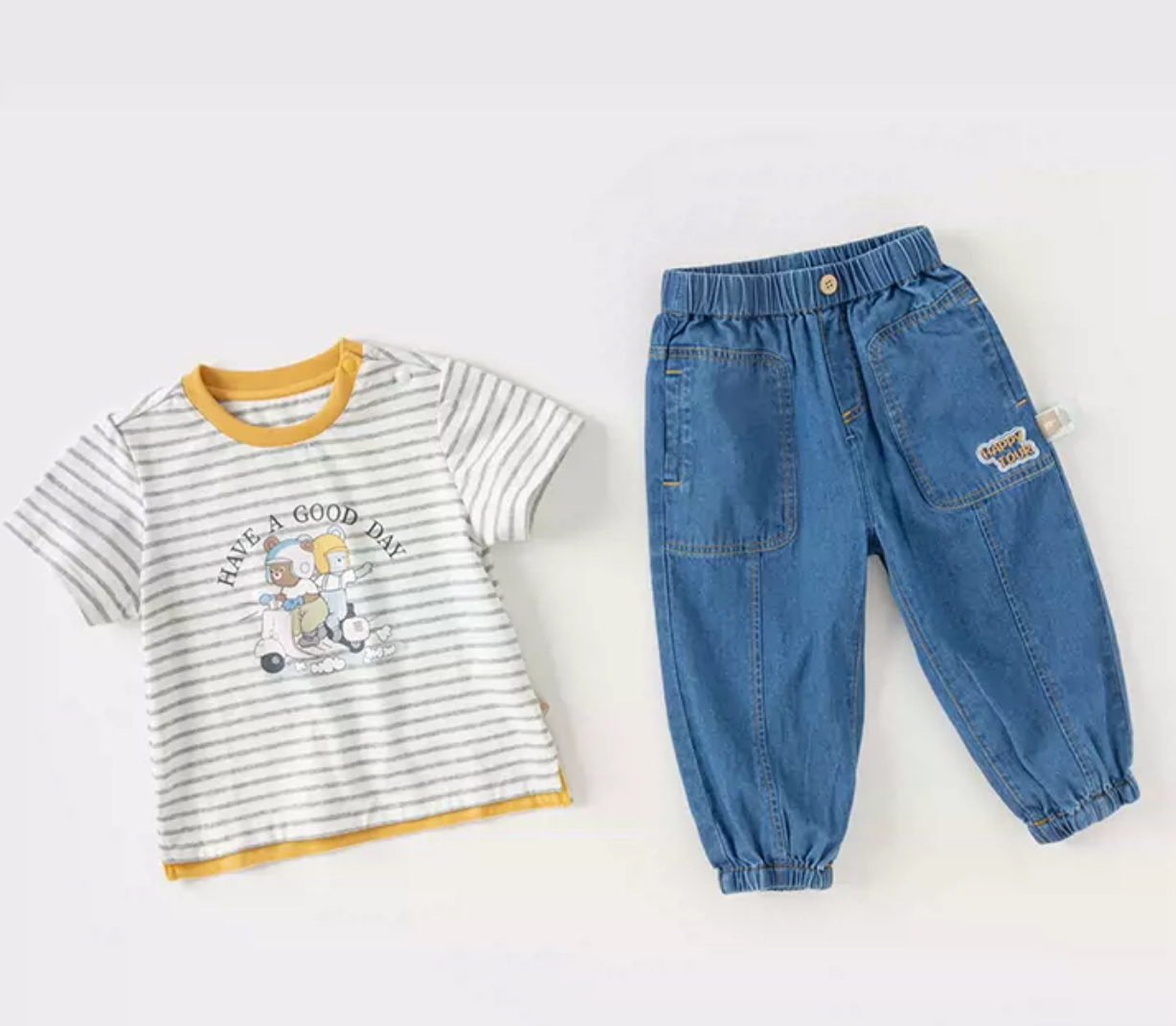 デニムパンツにはHAPPYTOURのワッペン付きがかわいいです。