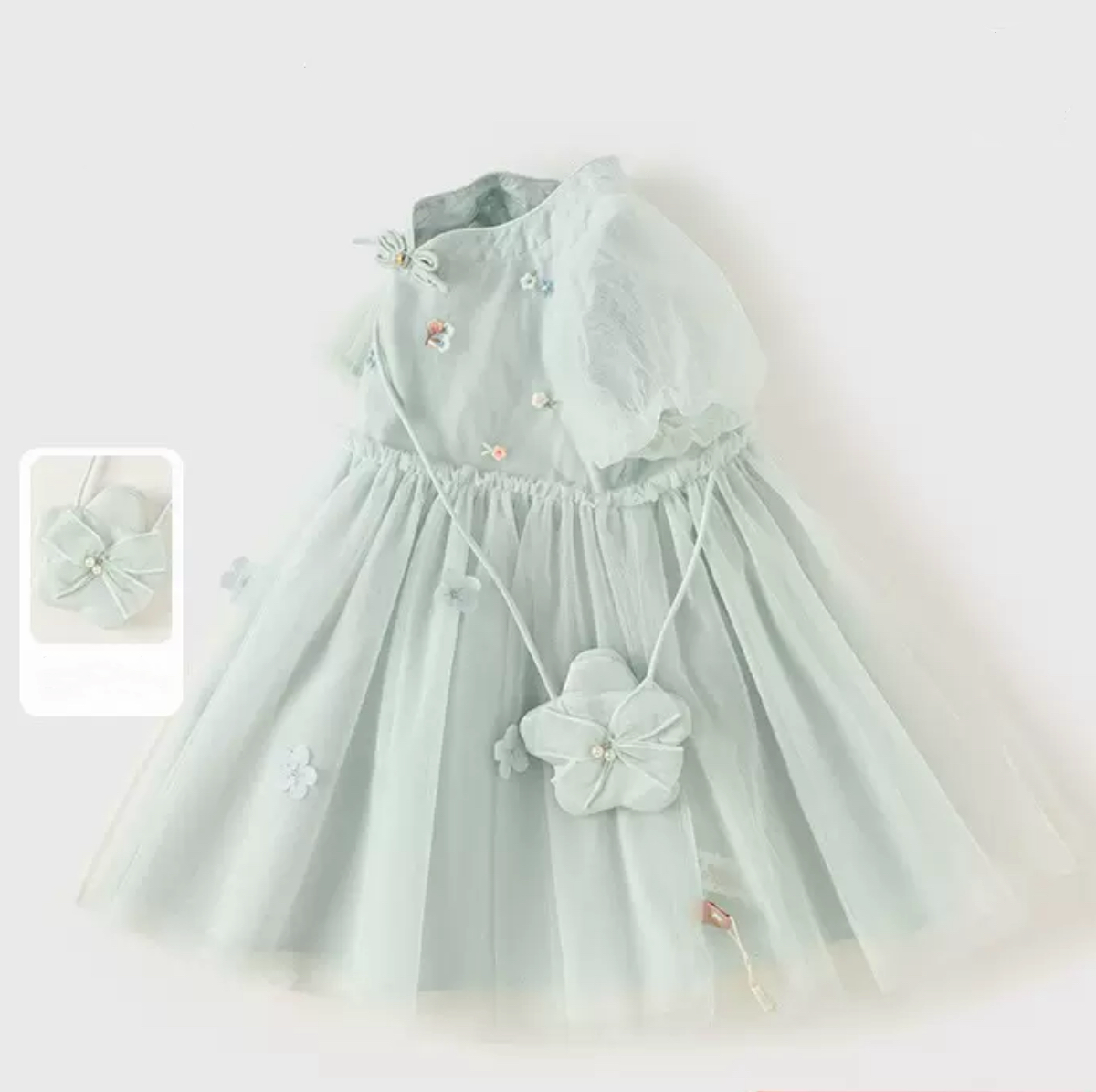 くすみグリーンカラーがおしゃれなチャイナデザインのチュールワンピースです。