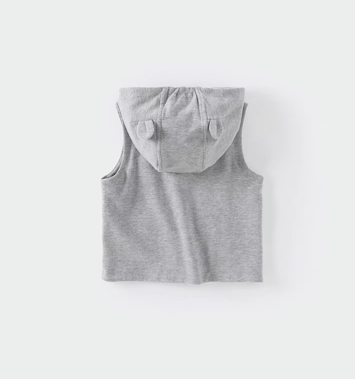 フードにくまみみが付いたベストとトレンチコートの2点セットです。